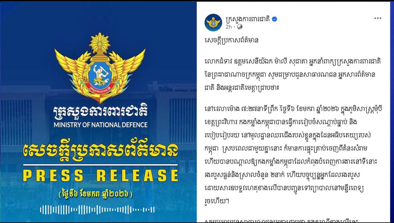 សម្តេចតេជោ ហ៊ុន សែន ប្រធានព្រឹទ្ធសភានៃកម្ពុជាតាមរយៈបណ្តាញសង្គមនៅយប់ថ្ងៃទី២៧ ខែកញ្ញា ឆ្នាំ២០២៥ បានបង្ហោះផ្សាយខ្លឹមសារដូចតទៅ៖ ថ្ងៃនេះមានការរំលោភលើបទឈប់បាញ់ដោយប្រើកាំភ្លើងត្បាល់ និងកាំភ្លើងយន្ត។ នាយករដ្ឋមន្ត្រី