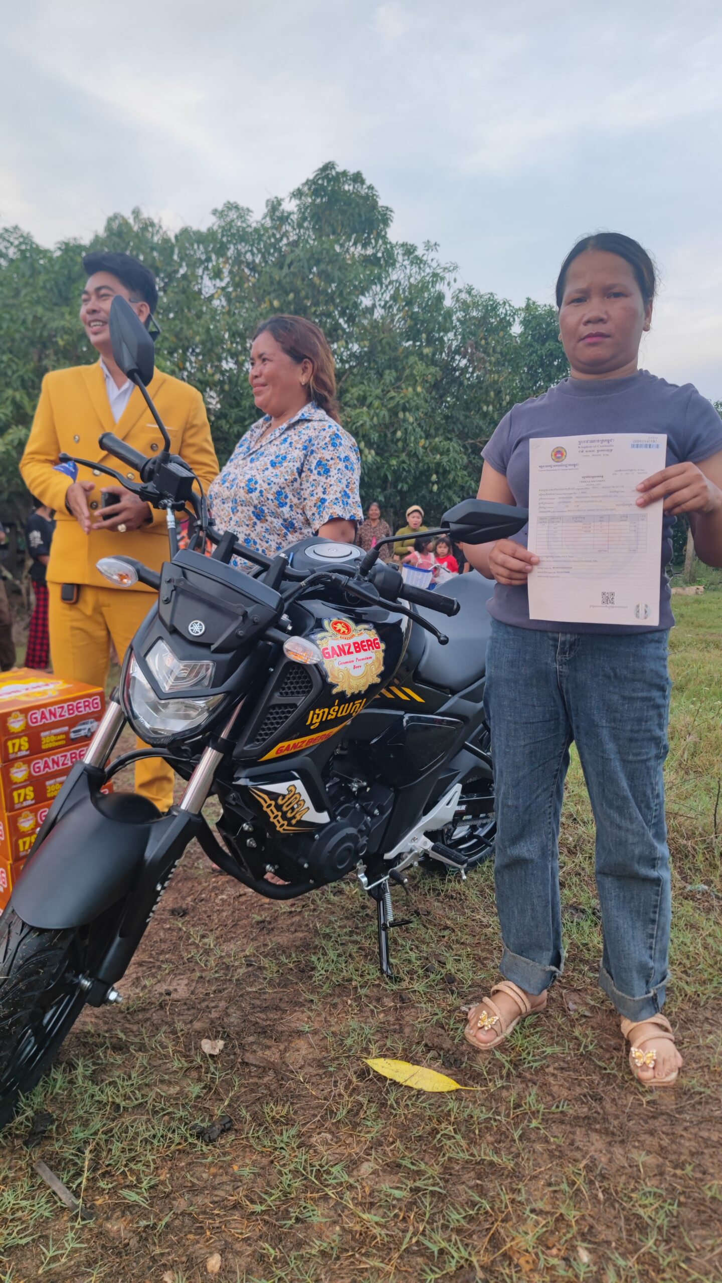 ក្រុមហ៊ុនស្រាបៀរ GANZBERG បានបង្ហាញពីការយកចិត្តទុកដាក់ក្នុងការផ្តល់រង្វាន់ដ៏អស្ចារ្យជូនដល់អតិថិជនកំពូលសំណាងជាច្រើនរូបកន្លងមកហើយ អីឡូវនេះក៏បានរកឃើញអតិថិជនមួយរូបទៀតមានឈ្មោះថា មាស សុគា រស់នៅភូមិអន្លុងម៉ាក់ប្រាំង ឃុំស្ទឹងកែវ ស្រុកទឹកឈូ ខេត្តកំពត បានឈ្នះរង្វាន់ម៉ូតូធំលេខរៀងទី 3034។ អ្វីដែលគួរឱ្យចាប់អារម្មណ៍នោះគឺ រង្វាន់ម៉ូតូធំនេះទើបតែទម្លាក់ចេញពីទូរគុងទីន័រ ហើយក៏មិនទាន់បានបកចេញពីកេសផងដែរ យកទៅប្រគល់ជូនអតិថិជនតែម្ដង។ ក្រុមហ៊ុនស្រាបៀរ GANZBERG បានប្រើពេលតែមួយថ្ងៃក្នុងការដឹកជញ្ជូន និងយកប្រគល់ទៅដល់គេហដ្ឋានរបស់អ្នករង្វាន់ឈ្មោះ មាស សុគា ដោយផ្ទាល់ និងផ្ដល់ភាពងាយស្រួលដល់រូបគាត់ទៀតផងដែរ។ តែអ្វីដែលគួរអោយអស់សំណើចបំផុតនោះគឺ រង្វាន់ម៉ូតូធំបានដឹកដល់ផ្ទះគាត់ហើយ តែបែជាគ្មានជាងរូបណាមួយចេះតម្លើងទាល់តែសោះ ទោះគាត់បានរកជាងមកមើលហើយក៏ដោយ ក៏មិនមានជាងរូបណាដែលនៅក្បែនោះចេះតម្លើងដែរ និងសូម្បីតែអ្នកភូមិជិតខាងផ្ទះចេញមកមើលហើយថែមទាំងបានលើកឡើងថា អ្នកណាចេះតម្លើងបើម៉ូតូធំនឹងមិនដែលបានជិះផង។ ក្នុងខណៈពេលនោះក្រុមការងារ GANZBERG មិនធ្វើអោយអតិថិជនមានការពិបាកនោះទេ គឺបានរៀបចំជាងរួចជាស្រេចក្នុងការតម្លើងម៉ូតូធំថ្មីបកពីកេសដល់ផ្ទះគាត់តែម្ដង ពិតជាមិនធម្មតាមែន ក្រុមហ៊ុនស្រាបៀរ GANZBERG មិនមែននាំយករង្វាន់ដែលនៅក្នុងស្រុកទេ គឺកម្មង់ពីក្រៅប្រទេសសម្រាប់ទុកប្រគល់ជូនអតិថិជនដែលតែងតែបន្តការគាំទ្រកន្លងមក និងមិនធ្វើអោយអតិថិជនខកបំណងឡើយ និងថែមទាំងយកចិត្តទុកដាក់ខ្ពស់លើអតិថិជនផងដែរ។