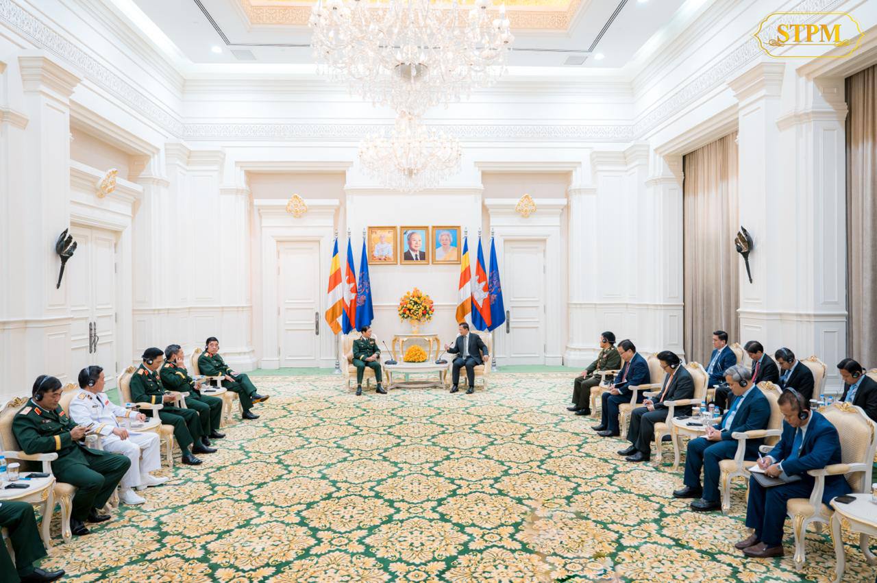 នាព្រឹកថ្ងៃទី៤ ខែមិថុនា ឆ្នាំ២០២៥, សម្តេចមហាបវរធិបតី ហ៊ុន ម៉ាណែត នាយករដ្ឋមន្ត្រីនៃព្រះរាជាណាចក្រកម្ពុជា បានអនុញ្ញាតឱ្យ ឯកឧត្តម នាយឧត្តមសេនីយ៍ ង្វៀន តឹនគឿង (Nguyen Tan Cuong) អនុរដ្ឋមន្ត្រីក្រសួងការពារប្រទេស និងជាប្រធានអគ្គសេនាធិការកងទ័ពប្រជាជនវៀតណាម ចូលជួបសម្ដែងការគួរសម និងពិភាក្សាការងារ នៅវិមានសន្ដិភាព ។