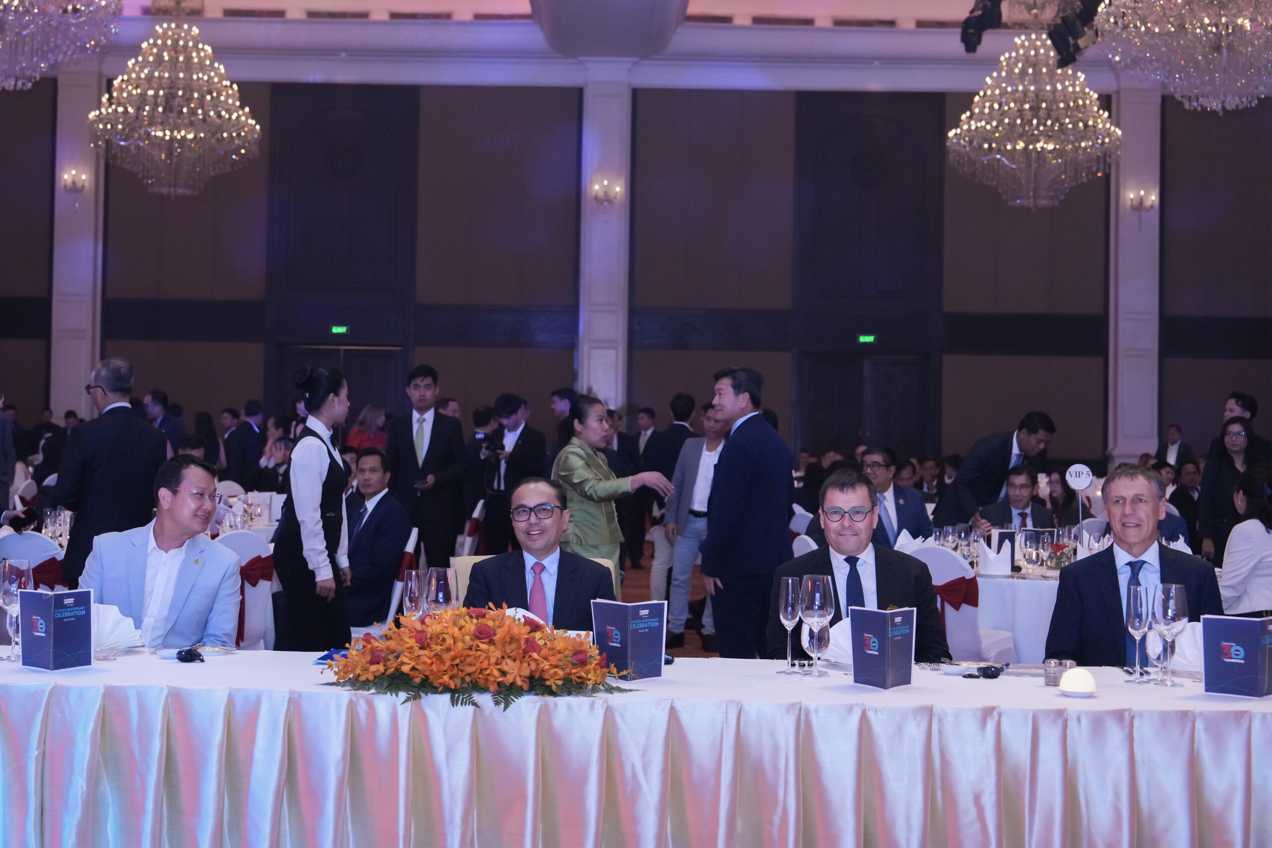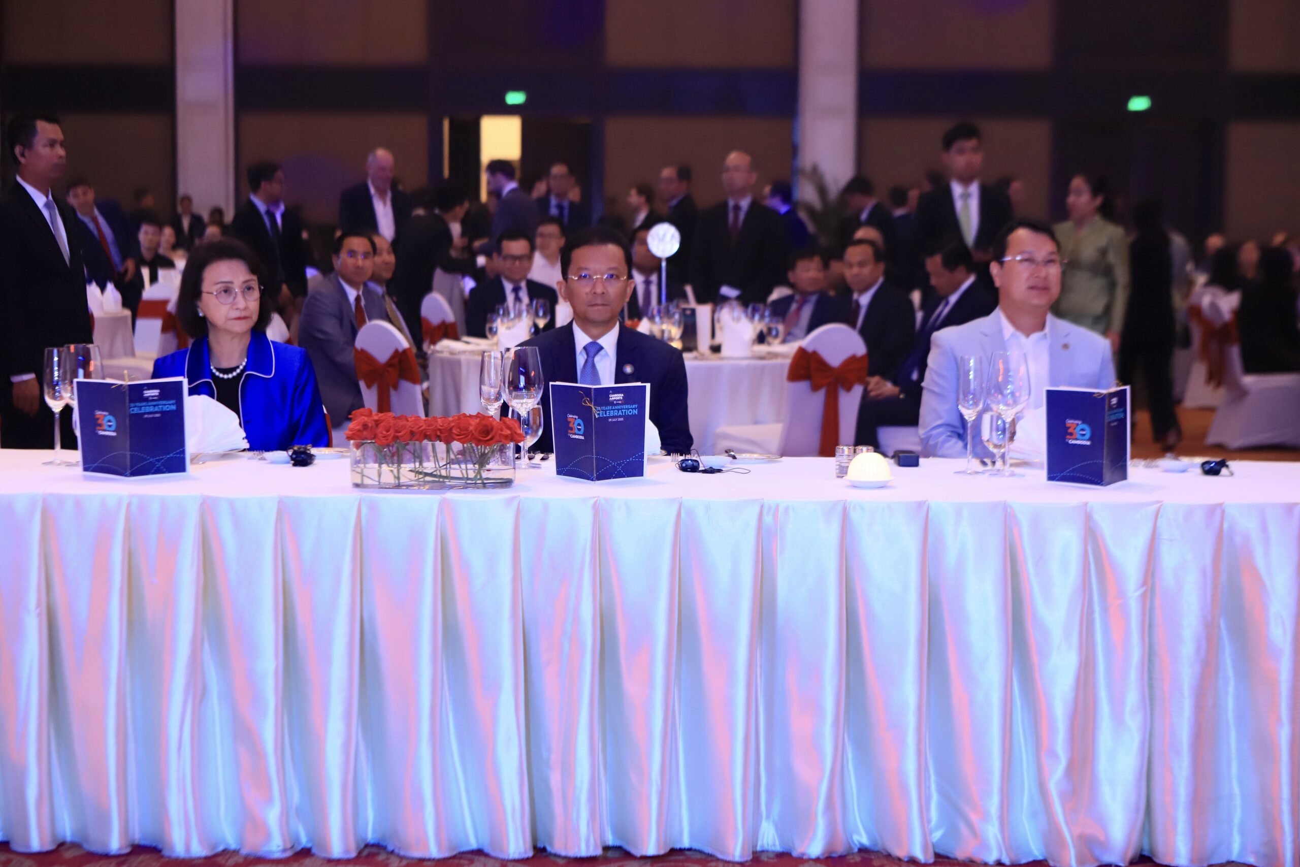 (ភ្នំពេញ)៖ នាល្ងាចថ្ងៃទី៩ ខែកក្កដា ឆ្នាំ២០២៥ ឯកឧត្តម វង្សី វិស្សុត ឧបនាយករដ្ឋមន្រ្តីប្រចាំការ រដ្ឋមន្រ្តីទទួលបន្ទុកទីស្តីការគណៈរដ្ឋមន្រ្តី តំណាងដ៏ខ្ពង់ខ្ពស់សម្តេចមហាបវរធិបតី ហ៊ុន ម៉ាណែត នាយករដ្ឋមន្ត្រីនៃព្រះរាជាណាចក្រកម្ពុជា បានអញ្ជើញជាអធិបតីក្នុងពិធី «អបអរសាទរគម្រប់ខួប៣០ឆ្នាំ នៃក្រុមហ៊ុនអាកាសយានដ្ឋានកម្ពុជា-SCA» ដោយមានការអញ្ជើញចូលរួមពីសំណាក់ លោក Nicolas Notebaert អគ្គនាយកក្រុមហ៊ុនអាកាសយានដ្ឋាន VINCI និងជាប្រធានក្រុមប្រឹក្សាភិបាលក្រុមហ៊ុន SCA, ឯកឧត្តម លោកជំទាវ សមាជិករាជរដ្ឋាភិបាល និងថ្នាក់ដឹកនាំជាតំណាងក្រសួង ស្ថាប័នពាក់ព័ន្ធ, ឯកឧត្ដមឯកអគ្គរដ្ឋទូតបារាំងប្រចាំកម្ពុជា, ឯកឧត្ដមឯកអគ្គរាជទូតម៉ាឡេស៊ីប្រចាំកម្ពុជា, តំណាងក្រុមហ៊ុនអាកាសចរណ៍ជាតិ និងអន្តរជាតិ ព្រមទាំងភ្ញៀវជាតិនិងអន្តរជាតិជាច្រើនរូប។
