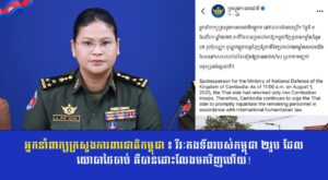 ថ្លែងនៅក្នុងការធ្វើបច្ចុប្បន្នភាពព័ត៌មានស្ដីពី «លទ្ធផលនៃការអនុវត្តបទឈប់បាញ់រវាងកម្ពុជា-ថៃ» នៅទីស្ដីការគណៈរដ្ឋមន្ត្រី នាម៉ោង ៧:០០ ព្រឹកថ្ងៃទី៧ ខែសីហា ឆ្នាំ២០២៥ នេះ លោកជំទាវឧត្តមសេនីយ៍ឯក ម៉ាលី សុជាតា អ្នកនាំពាក្យក្រសួងការពារជាតិបានគូសបញ្ជាក់ថា សហរដ្ឋអាមេរិកបានបញ្ជាក់ពីជំហររបស់ខ្លួន ក្នុងការគាំទ្របទឈប់បាញ់ ដែលជាគំនិតផ្តួចផ្តើមរបស់ឯកឧត្តមប្រធានាធិបតី Donald Trump (ដូណាល់ ត្រាំ) និងបានដឹកនាំដោយប្រទេសម៉ាឡេស៊ី ដែលជាប្រធានអាស៊ានប្តូរវេន ក្នុងការអនុវត្តបទឈប់បាញ់។ លោកជំទាវបានបន្តថា សហរដ្ឋអាមេរិកនឹងតាមដានយ៉ាងយកចិត្តទុកដាក់បំផុតដើម្បីឲ្យការអនុវត្តនេះដំណើរទៅប្រកបដោយភាពជោគជ័យ និងមានប្រសិទ្ធភាព។