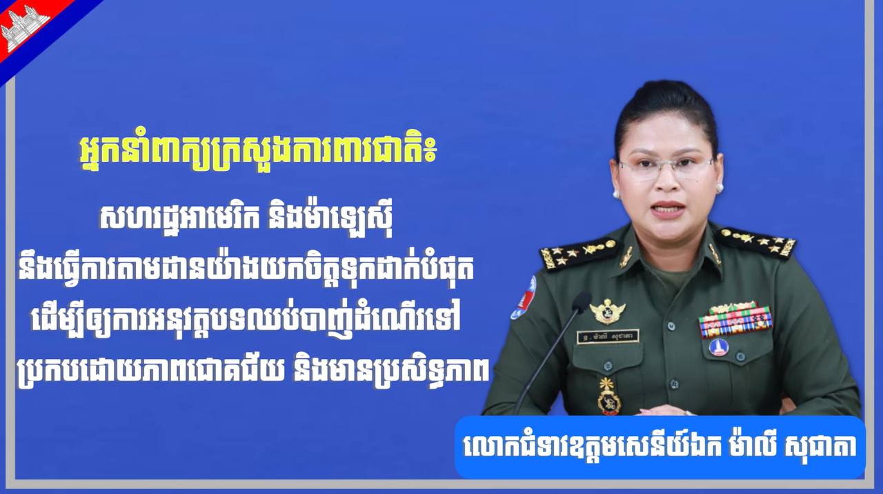 អ្នកនាំពាក្យក្រសួងការពារជាតិ៖សហរដ្ឋអាមេរិក និងម៉ាឡេស៊ី នឹងធ្វើការតាមដានយ៉ាងយកចិត្តទុកដាក់បំផុត ដើម្បីឲ្យការអនុវត្តបទឈប់បាញ់ដំណើរទៅប្រកបដោយភាពជោគជ័យ និងមានប្រសិទ្ធភាព