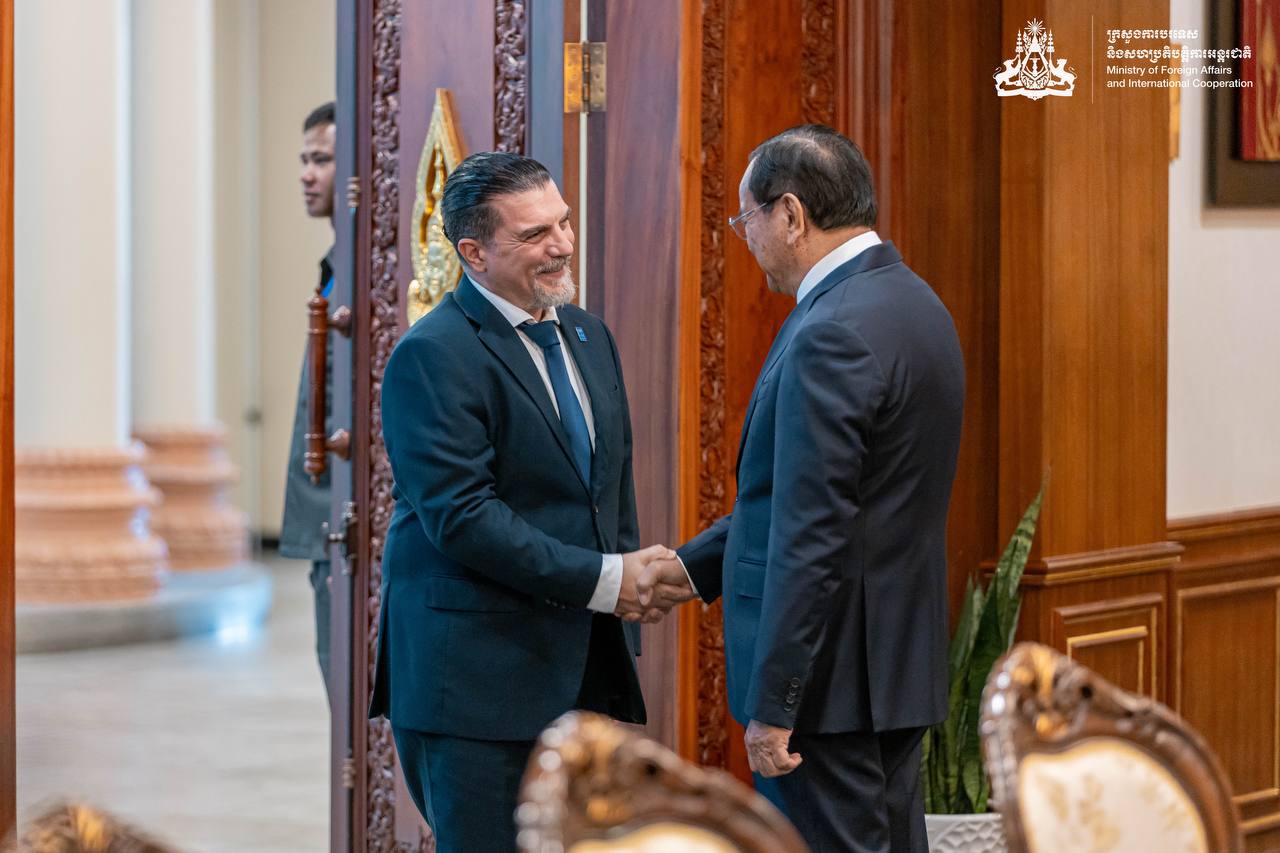 On the morning of 20 August 2025, His Excellency Deputy Prime Minister PRAK Sokhonn, Minister of Foreign Affairs and International Cooperation, received a courtesy call from Mr. Enrico Gaveglia, the newly appointed United Nations Development Programme (UNDP) Resident Representative to the Kingdom of Cambodia, who presented his Letter of Credence.