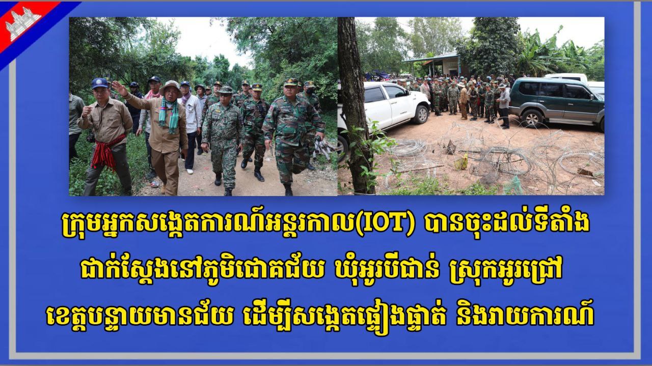 ក្រុមអ្នកសង្កេតការណ៍អន្តរកាល(IOT) បានចុះដល់ទីតាំងជាក់ស្តែងនៅភូមិជោគជ័យ ឃុំអូរបីជាន់ ស្រុកអូរជ្រៅ ខេត្តបន្ទាយមានជ័យ ដើម្បីសង្កេតផ្ទៀងផ្ទាត់ និងរាយការណ៍