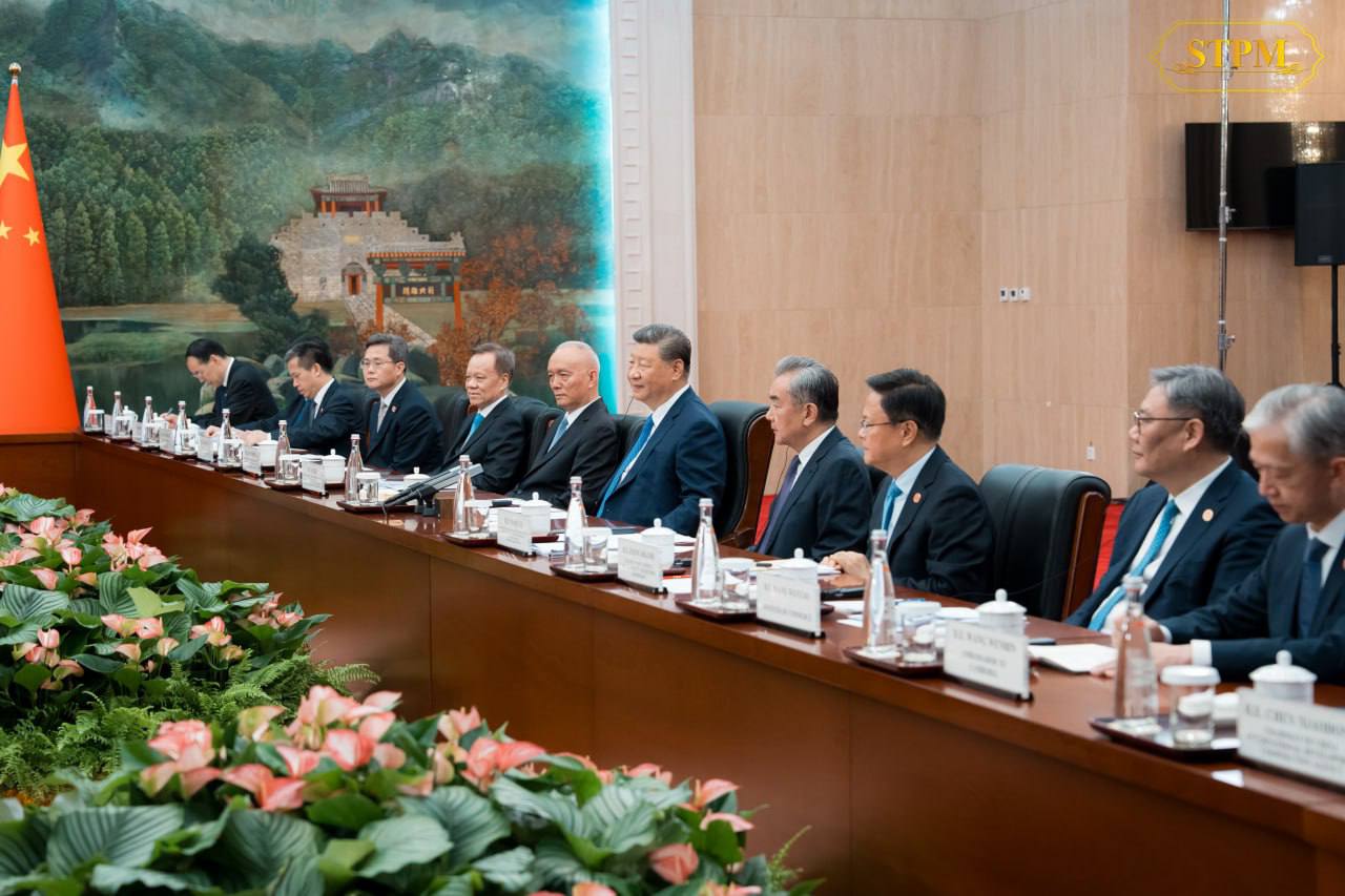 ក្នុងឱកាសនៃជំនួប ឯកឧត្តមប្រធានាធិបតី បានសម្តែងការស្វាគមន៍ប្រកបដោយមនោសញ្ចេតនាយ៉ាងជ្រាលជ្រៅបំផុត ជូនចំពោះ សម្តេចបវរធិបតី និងគណៈប្រតិភូរាជរដ្ឋាភិបាលកម្ពុជា ដែលបានឆ្លៀតឱកាសដ៏មមាញឹក អញ្ជើញចូលរួមកិច្ចប្រជុំកំពូលនៃអង្គការសហប្រតិបត្តិការសៀងហៃ បូក នៅសាធារណរដ្ឋប្រជាមានិតចិននាពេលនេះ។ ឯកឧត្តមប្រធានាធិបតីបានចាត់ទុកវត្តមានរបស់សម្តេចបវរធិបតី គឺជាកាលានុវត្តភាពដ៏សំខាន់ ដើម្បីបន្តរឹតចំណងមិត្តភាពដែកថែប និងពង្រីកសាមគ្គីភាព ចិន-កម្ពុជា ឱ្យកាន់តែរឹងមាំថែមទៀត បន្ទាប់ពីទស្សនកិច្ចផ្លូវរដ្ឋរបស់ឯកឧត្តម កាលពីខែមេសា កន្លងទៅ។ ពាក់ព័ន្ធនឹងស្ថានភាពនៅតាមព្រំដែនកម្ពុជា-ថៃ, ឯកឧត្តម ស៊ី ជីនពីង បានបញ្ជាក់ជាថ្មីពីជំហររបស់ចិនក្នុងការគាំទ្របទឈប់បាញ់, គាំទ្រយន្តការសង្កេតការណ៍បទឈប់បាញ់របស់អាស៊ានដែលដឹកនាំដោយម៉ាឡេស៊ី និងចង់ឱ្យបង្កើតក្រុមអ្នកសង្កេតការណ៍អាស៊ាន (AOT) ឱ្យបានឆាប់។ ទន្ទឹមនឹងនេះ ឯកឧត្តមប្រធានាធិបតីក៏បានគាំទ្រ និងផ្តល់ជំនួយមនុស្សធម៌ដល់កម្ពុជា ដើម្បីជួយស្តារឡើងវិញនូវការខូចខាត និងជួយសម្រួលដល់ទុក្ខលំបាករបស់ប្រជាពលរដ្ឋដែលរងគ្រោះពីការប៉ះទង្គិចប្រដាប់អាវុធកាលពីចុងខែកក្កដាកន្លងទៅ។