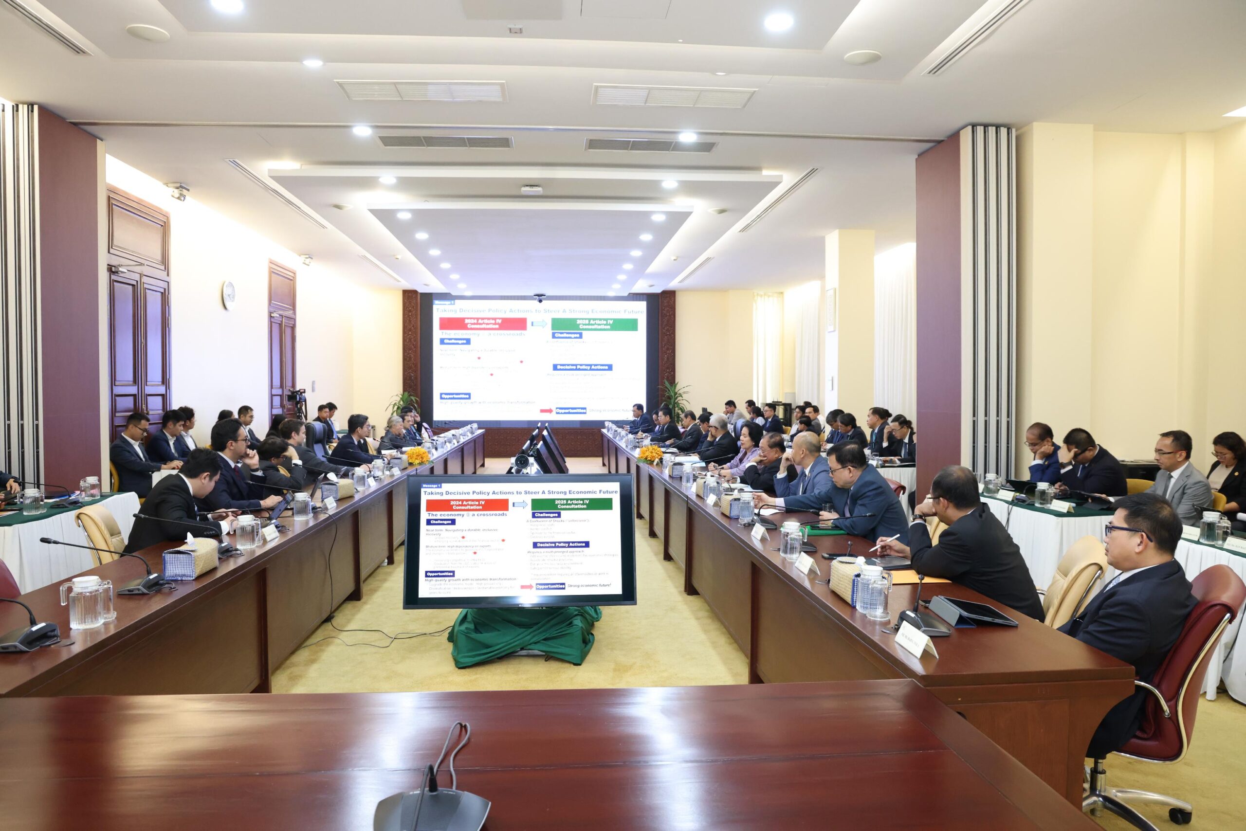 ជាមួយនឹងការថ្លែងអំណរគុណ និងការវាយតម្លៃខ្ពស់ចំពោះលទ្ធផលនៃការវាយតម្លៃរបស់ក្រុមជំនាញការបេសកកម្ម Article IV, អគ្គបណ្ឌិតសភាចារ្យ ឧបនាយករដ្ឋមន្ត្រី បានធ្វើការកត់សម្គាល់ពីសង្គតិភាពនៃនិន្នាការកំណើន (growth trend) និងការវាយតម្លៃកំណើនតាមវិស័យសំខាន់ៗក្នុងឆ្នាំ ២០២៥ បើទោះជាទំហំ (magnitude) និងការរំពឹងទុកសម្រាប់រយៈពេលខាងមុខនៅមានភាពខុសគ្នាបន្តិចបន្តួចក៏ដោយ។