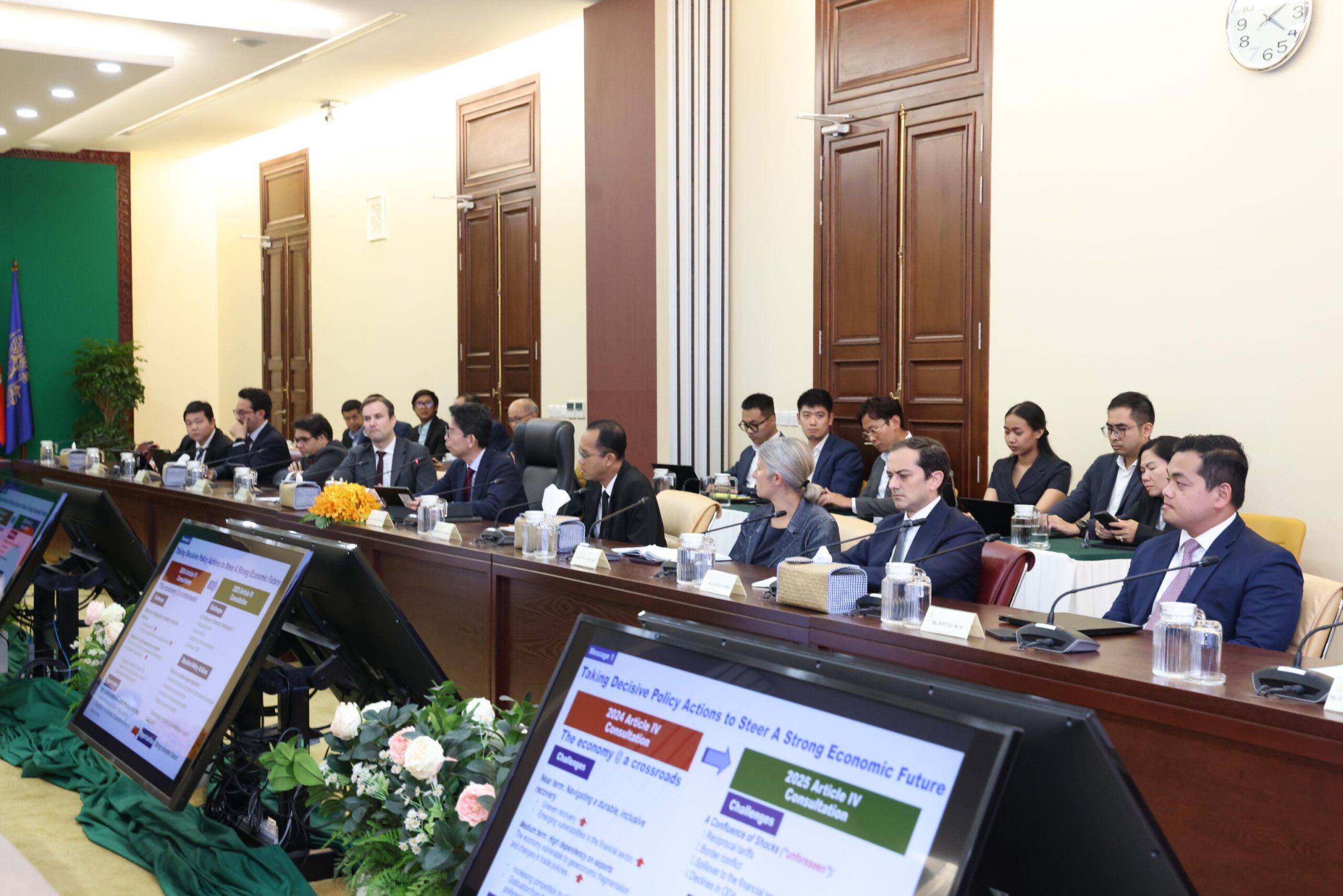 ការបង្ហាញពីការព្យាករកំណើនសេដ្ឋកិច្ចរបស់ IMF នេះធ្វើឡើងក្នុងឱកាសអគ្គបណ្ឌិតសភាចារ្យ អូន ព័ន្ធមុនីរ័ត្ន ឧបនាយករដ្ឋមន្រ្តី រដ្ឋមន្រ្តីក្រសួងសេដ្ឋកិច្ច និងហិរញ្ញវត្ថុ បានដឹកនាំកិច្ចប្រជុំ (Wrap-up Meeting) ដើម្បីបូកសរុប «លទ្ធផលនៃការវាយតម្លៃស្ថានភាពម៉ាក្រូសេដ្ឋកិច្ច និងហិរញ្ញវត្ថុ-សាធារណៈនៃកម្ពុជាសម្រាប់ឆ្នាំ ២០២៥» ជាមួយក្រុមជំនាញការបេសកកម្ម Article IV នៃមូលនិធិរូបិយវត្ថុអន្តរជាតិ (International Monetary Fund – IMF) ដឹកនាំដោយលោក Kenichiro Kashiwase ប្រធានក្រុមបេសកកម្ម