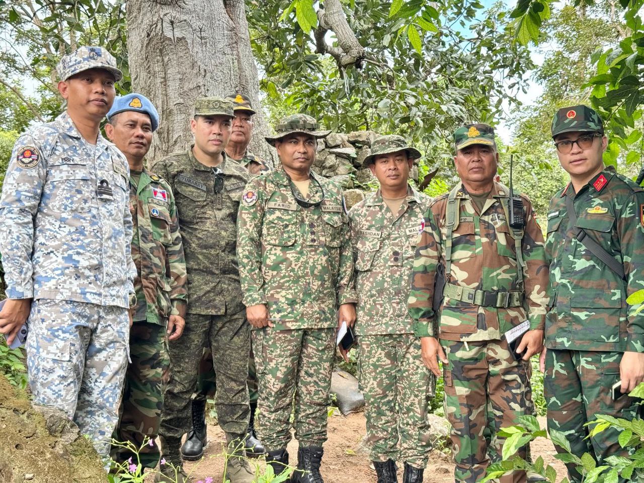 ក្រុមអ្នកសង្កេតការណ៍អន្តរកាល(IOT) ចុះពិនិត្យទីតាំងជាក់ស្តែងក្រោយបទឈប់បាញ់នៅច្រកបឹងត្រកួន ខេត្តបន្ទាយមានជ័យដើម្បីសង្កេតការណ៍ ផ្ទៀងផ្ទាត់ និងរាយការណ៍