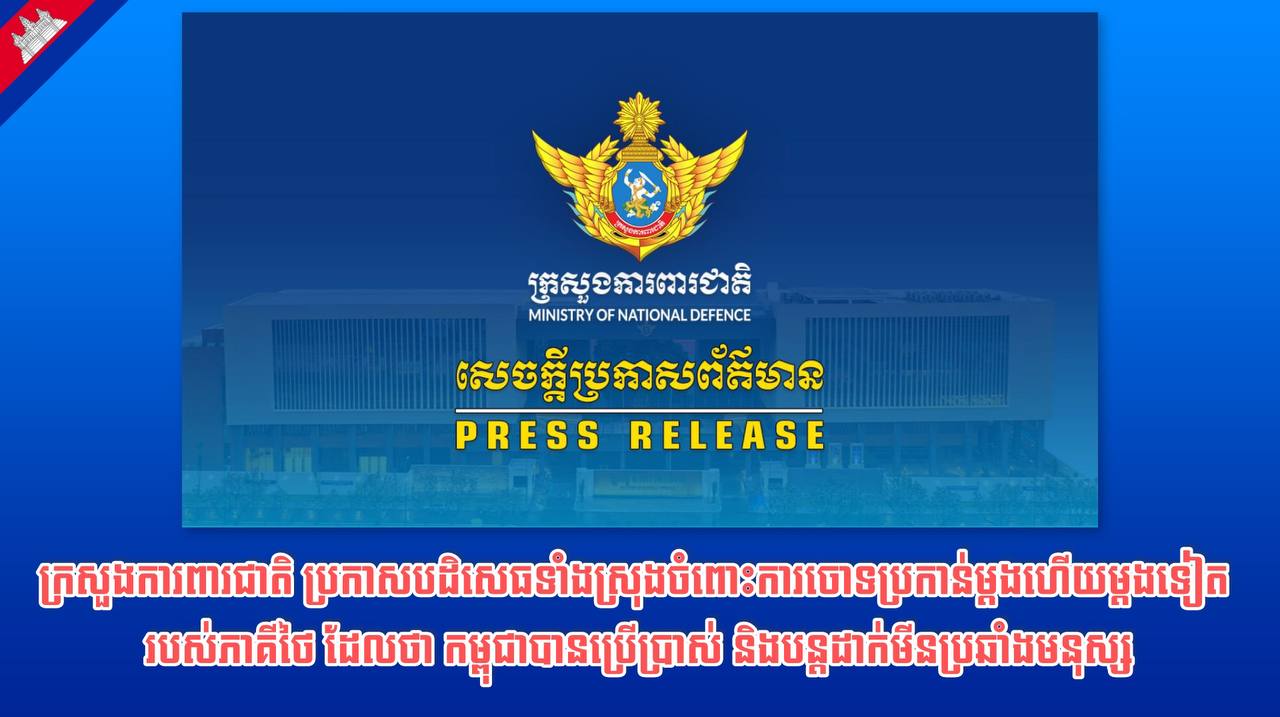 ក្រសួងការពារជាតិ ប្រកាសបដិសេធទាំងស្រុងចំពោះការចោទប្រកាន់ម្តងហើយម្តងទៀតរបស់ភាគីថៃ ដែលថា កម្ពុជាបានប្រើប្រាស់ និងបន្តដាក់មីនប្រឆាំងមនុស្ស