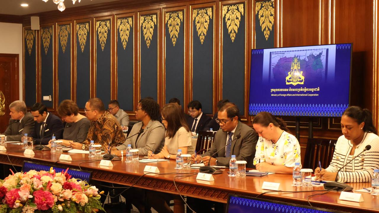 ក្រសួងការបរទេសកម្ពុជា បើកប្រជុំជាមួយបណ្ដាស្ថានទូតនានាប្រចាំកម្ពុជា និងតំណាងទីភ្នាក់ងារអង្គការសហប្រជាជាតិ ដើម្បីពន្យល់ពីការវិវត្តចុងក្រោយ នៃសភាពការណ៍ព្រំដែនកម្ពុជា-ថៃ