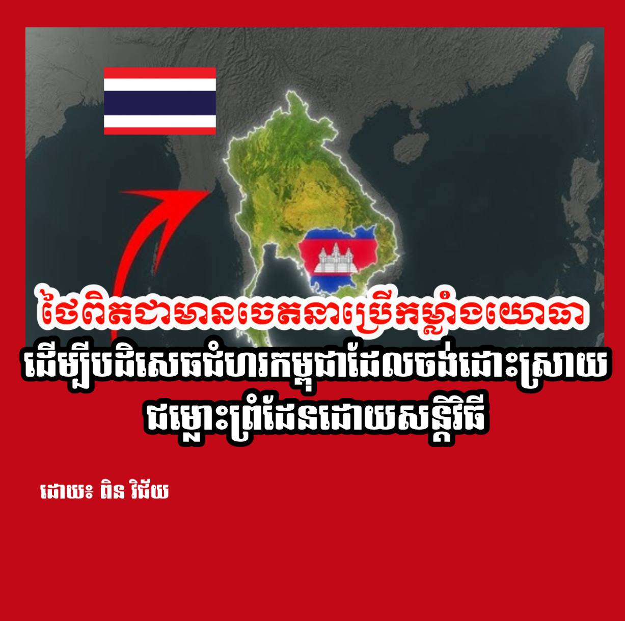 ថៃពិតជាមានចេតនាប្រើកម្លាំងយោធា ដើម្បីបដិសេធជំហរកម្ពុជាដែលចង់ដោះស្រាយជម្លោះព្រំដែនដោយសន្តិវិធី