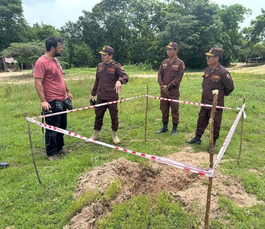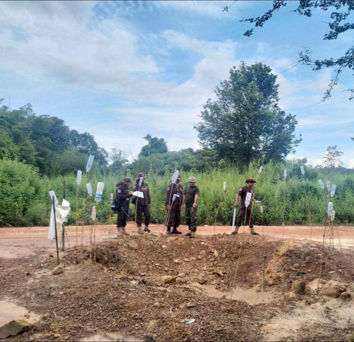 these photographs of bomb and artillery shell craters, these truly historical records of legacy of 5-day armed conflicts between Cambodia-Thailand (24-28 July 2025)! The remnants of war is well survey, identification, marking and in some cases to verify these subjects international experts also join with CMAC’s technical experts.!