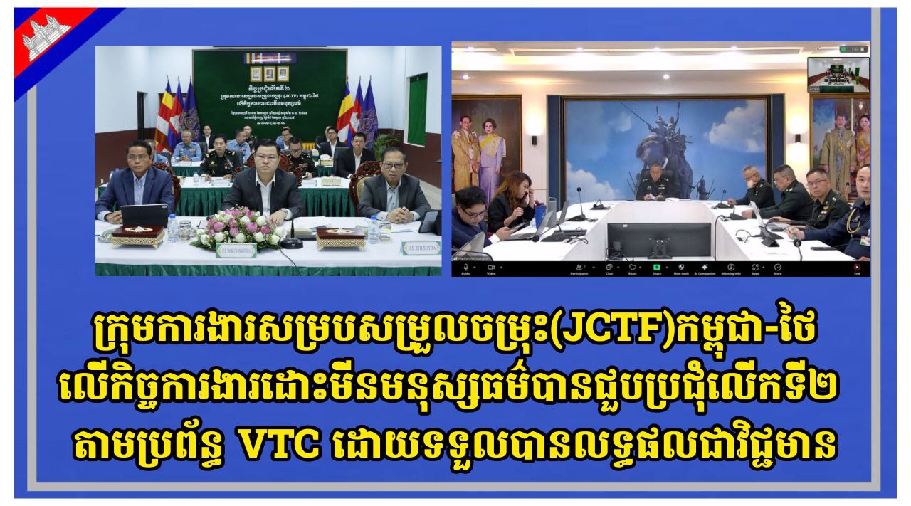 ក្រុមការងារសម្របសម្រួលចម្រុះ(JCTF)កម្ពុជា-ថៃលើកិច្ចការងារដោះមីនមនុស្សធម៌បានជួបប្រជុំលើកទី២ តាមប្រព័ន្ធ VTC ដោយទទួលបានលទ្ធផលជាវិជ្ជមាន