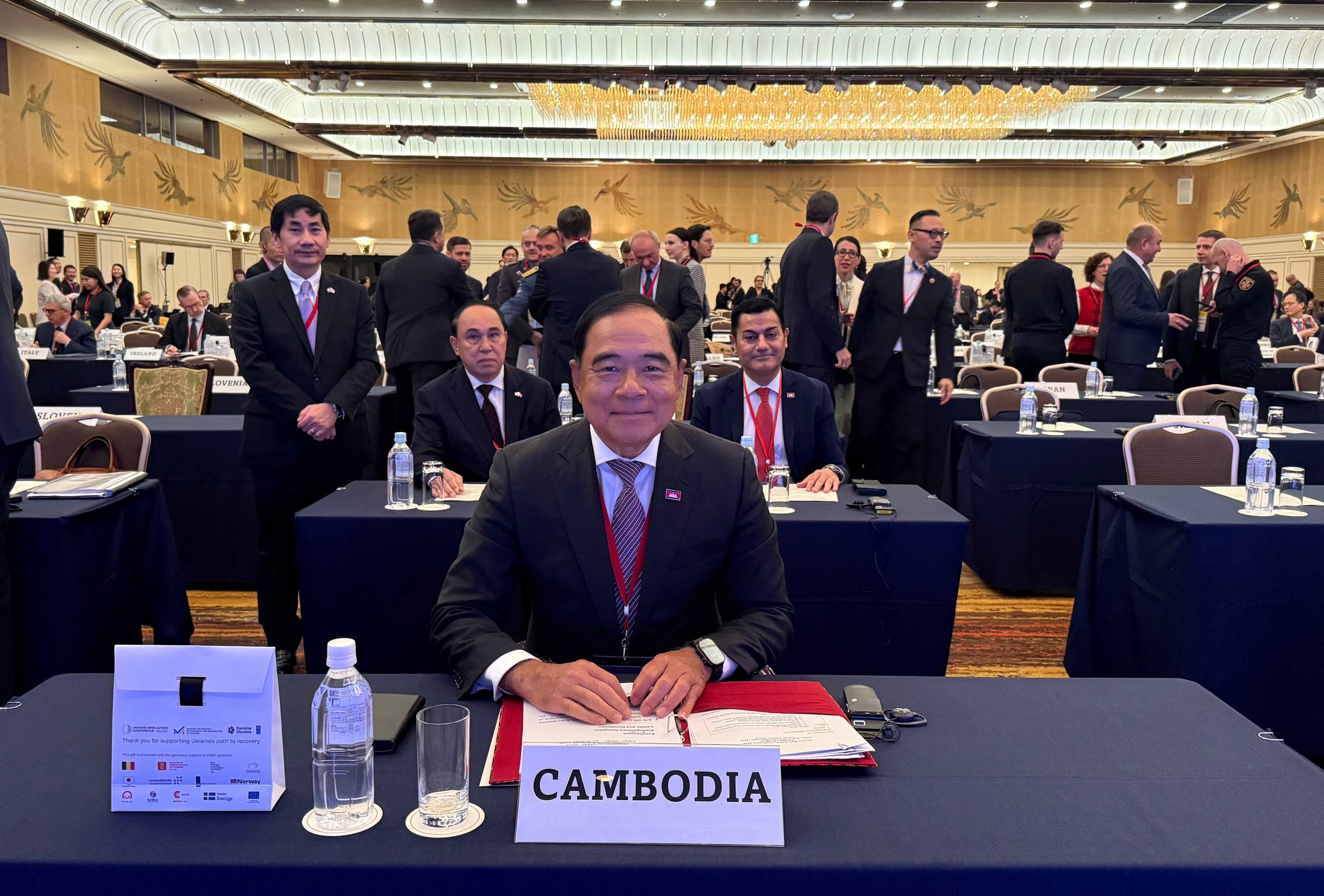 ឯកឧត្តបណ្ឌិត បានថ្លែងជូនអង្គសន្និសីទដែរថា កម្ពុជាធ្លាប់ទទួលរងគ្រោះធ្ងន់ធ្ងរដោយសារមីន និងសំណល់ជាតិផ្ទុះពីសង្គ្រាម ប៉ុន្តែ ក្រោមការដឹកនាំប្រកបដោយចក្ខុវិស័យ និងឆន្ទៈខ្ពស់របស់ សម្តេចតេជោ ហ៊ុន សែន អតីតនាយករដ្ឋមន្ត្រី និងបន្តដោយសម្តេចធិបតី ហ៊ុន ម៉ាណែត នាយករដ្ឋមន្ត្រីបច្ចុប្បន្ន តែងតែចាត់ទុកការងារបោសសម្អាតមីន ជាបេះដូងស្នូលនៃការអភិវឌ្ឍប្រទេសជាតិ ។ កម្ពុជាបានប្រែក្លាយជាប្រទេសឈានមុខក្នុងសកម្មភាពមីនសកល ដោយបានប្រែក្លាយដីរងគ្រោះ ទៅជាដីមានសុវត្ថិភាពសម្រាប់ការរស់នៅ និងអភិវឌ្ឍនិងបានចូលរួមចែករំលែកបទពិសោធន៍ និងជំនាញរបស់ខ្លួនទៅកាន់ប្រទេសនានានៅក្នុងពិភពលោក ដែលរួមទាំងប្រទេសអ៊ុយក្រែនផងដែរដើម្បីចូលរួមសម្រេចបានសន្តិភាព និងស្ថិរភាពក្នុងពិភពលោក។