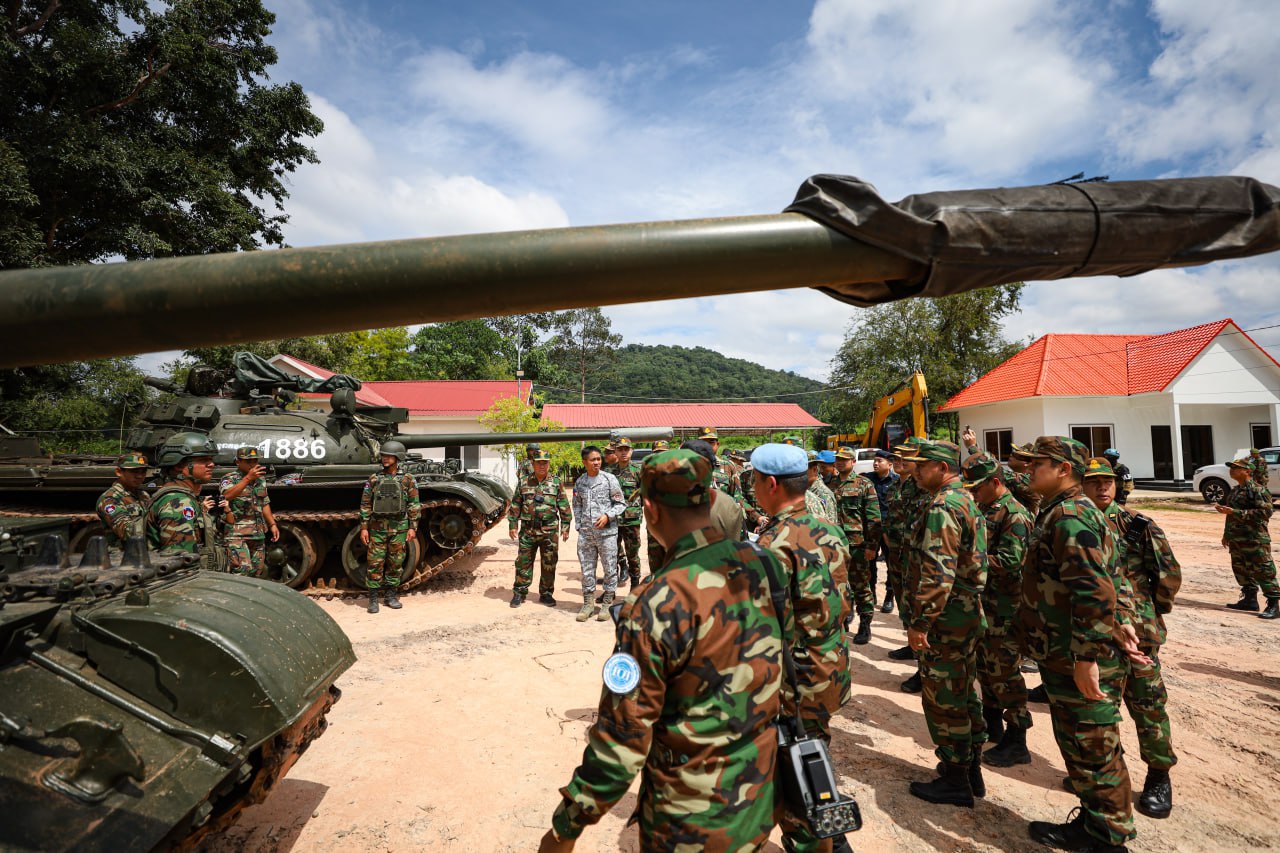 On October 27, 2025, at 11:00 AM, the Observer Coordination Team of the Ministry of National Defence of the Kingdom of Cambodia continued to coordinate with the ASEAN Observer Team (AOT) to inspect the weapons (armored vehicles) that returned to the base located in Banteay Srei District, Siem Reap Province, after being removed from the Cambodia–Thailand border dispute area at Tormacheat Village, Sra’Aem Commune, Choam Ksant District, Preah Vihear Province, on October 26, 2025, at 9:00 PM, following the agreement between the Cambodian and Thai sides to begin the partial removal of the first phase of the planned withdrawal of heavy and destructive weapons, as a symbolic demonstration of the implementation of the Joint Declaration adopted in Kuala Lumpur.