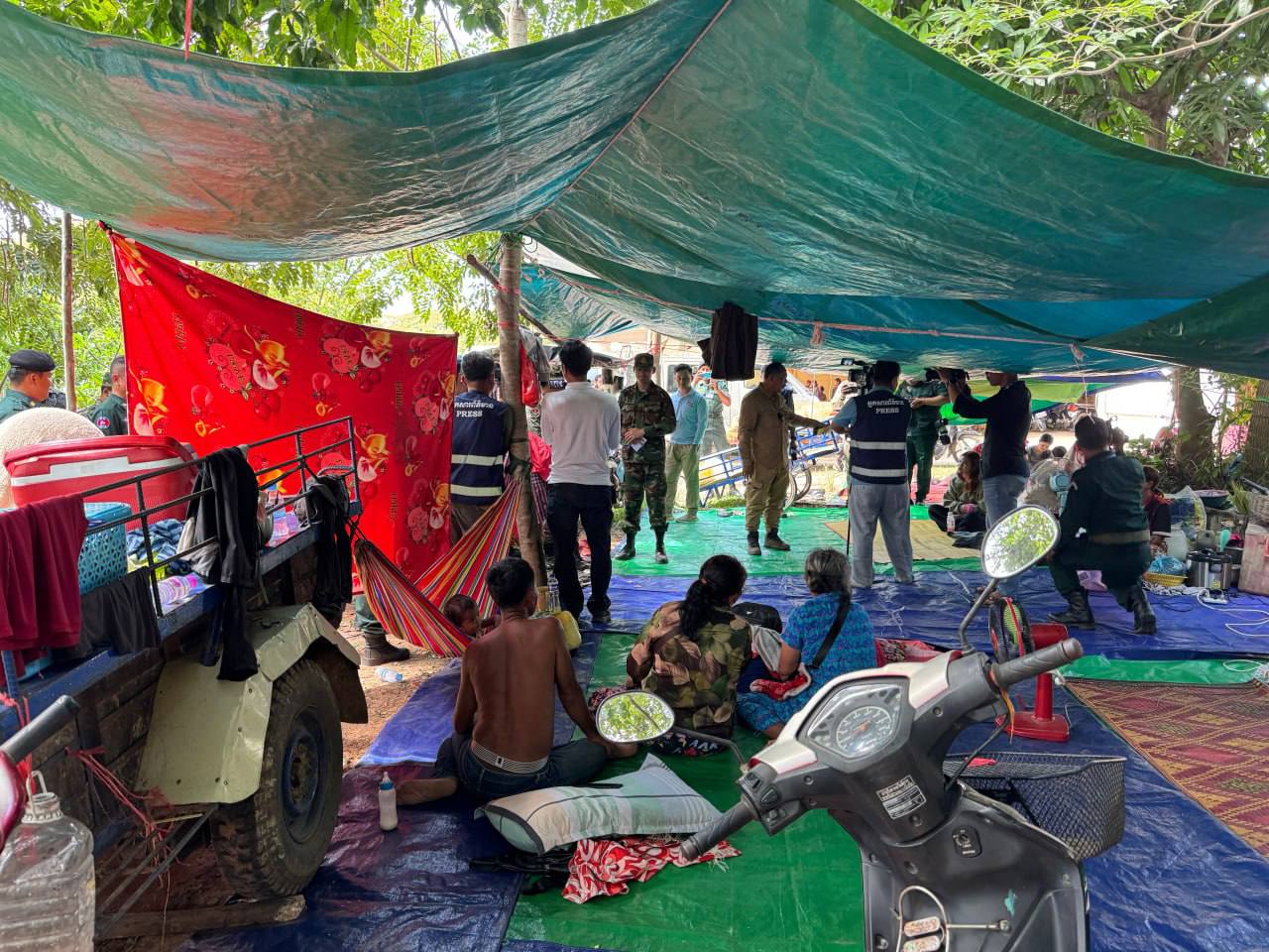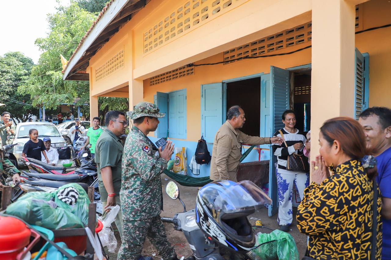 On November 13, 2025, at 12:12 PM, the ASEAN Observer Team (AOT), with the facilitation of the Coordinating Task Force for the Observer Team of the Ministry of National Defence of Cambodia, arrived at Wat Chansy Samaki Ratanaram located at East Kob Village, Kob commune, O’ Chrov district, Banteay Meanchey province— the Center for Displaced Civilians, where Prey Chan villagers took refuge for safety. The team inspected the actual situation of the displaced civilians and observed the situation on the ground after the Thai forces’ unprovoked use of violence against the innocent Cambodian civilians yesterday.