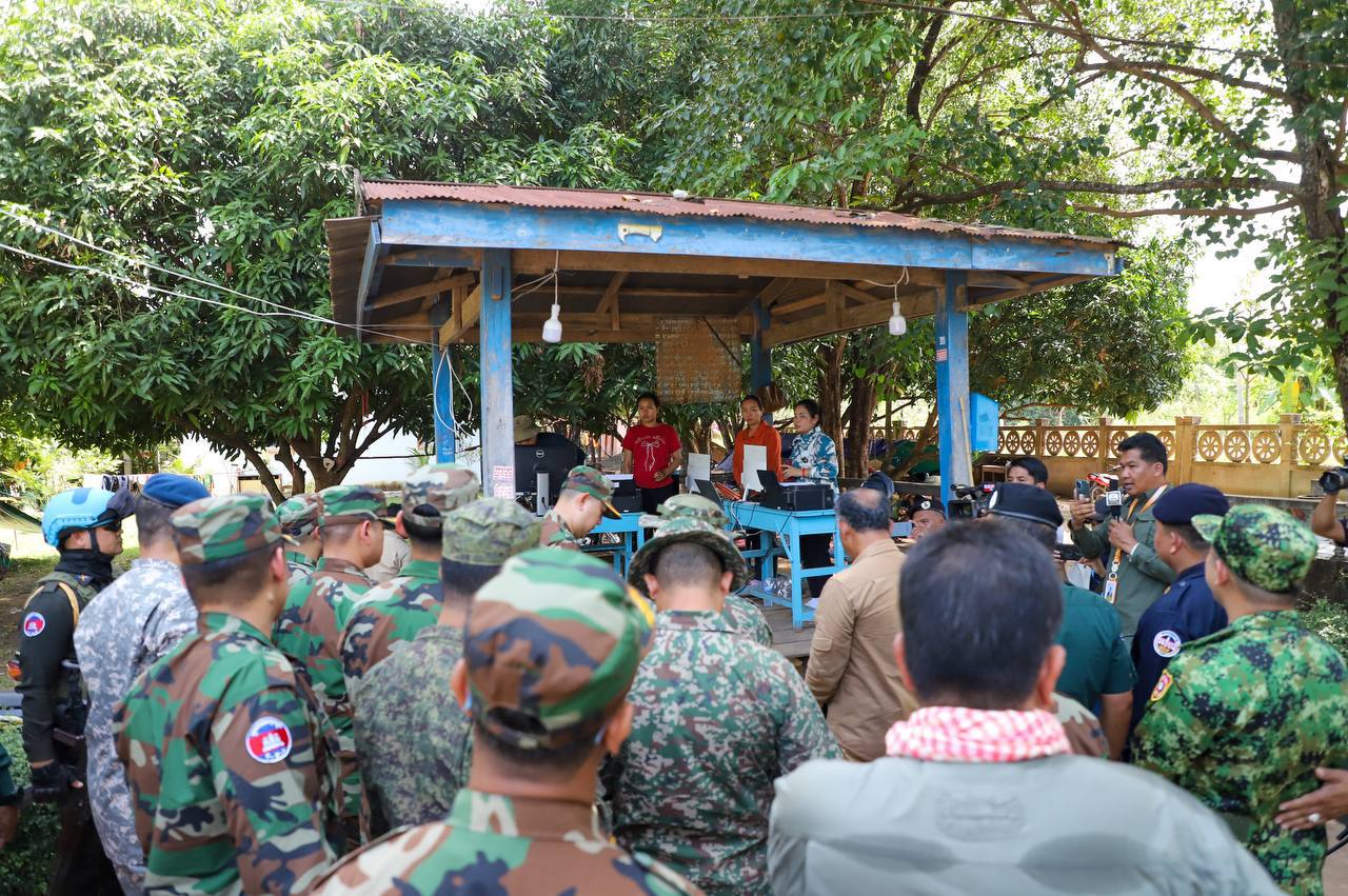 យោងតាមការបង្ហោះផ្សាយនៅលើបណ្តាញសង្គមរបស់ក្រសួងការពារជាតិនៅថ្ងៃទី១៣ ខែវិច្ឆិកា ឆ្នាំ២០២៥ បានឱ្យដឹងថា លោកជំទាវ ឧត្តមសេនីយ៍ឯក ម៉ាលី សុជាតា អ្នកនាំពាក្យក្រសួងការពារជាតិ នៃព្រះរាជាណាចក្រកម្ពុជា បានបញ្ជាក់ថា នៅថ្ងៃព្រហស្បតិ៍ ទី១៣ ខែវិច្ឆិកា ឆ្នាំ២០២៥ នៅវេលាម៉ោង ១២:១២នាទីថ្ងៃត្រង់នេះ ក្រុមការងារសម្របសម្រួលអ្នកសង្កេតការណ៍របស់ក្រសួងការពារជាតិ នៃព្រះរាជាណាចក្រកម្ពុជា បានសម្របសម្រួលជូនក្រុមអ្នកសង្កេតការណ៍អាស៊ាន (AOT) អញ្ជើញមកដល់មណ្ឌលជនភៀសសឹករបស់អ្នកភូមិព្រៃចាន់ ដែលបានភៀសខ្លួនមករកកន្លែងជម្រកសុវត្ថិភាព នៅក្នុងវត្តចាន់ស៊ីសាមគ្គីរតនារាម ស្ថិតនៅភូមិកូបកើត ឃុំកូប ស្រុកអូរជ្រៅ ខេត្តបន្ទាយមានជ័យ ដើម្បីសាកសួរសុខទុក្ខ និងពិនិត្យស្ថានភាពជាក់ស្តែង ការស្នាក់នៅរបស់ប្រជាពលរដ្ឋភៀសសឹក បន្ទាប់ពីហេតុការណ៍យោធាថៃបើកការបាញ់ប្រហារមកលើប្រជាពលរដ្ឋស៊ីវិលស្លូតត្រង់កម្ពុជាដោយគ្មានមូលហេតុកាលពីម្សិលមិញ។