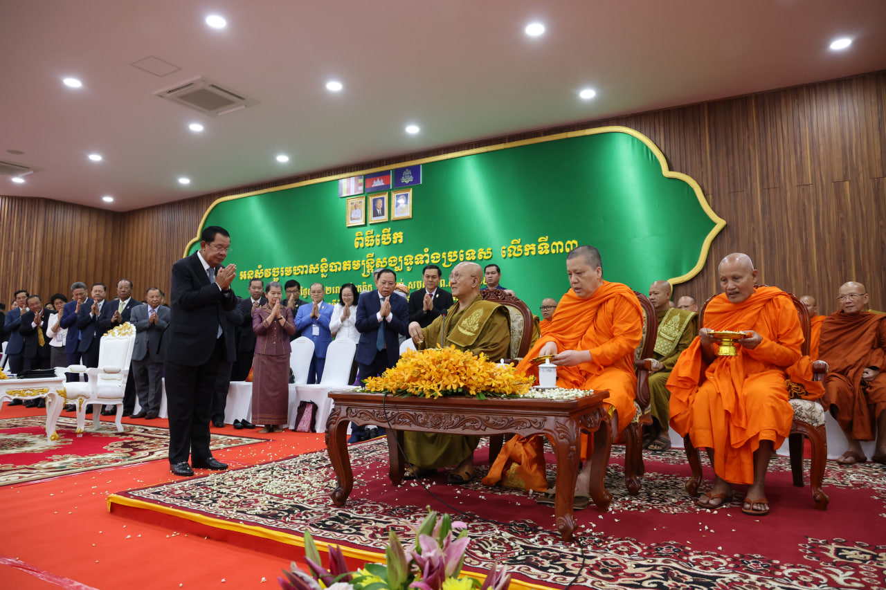 * សម្ដេចតេជោ ហ៊ុន សែន បានបង្ហាញក្ដីសោមនស្ស និងកិត្តិយសបំផុត ដែលបានព្រះមហាក្សត្រទ្រង់ព្រះរាជនុញ្ញាតដ៏ខ្ពង់ខ្ពស់ ព្រះរាជតំណាងបើកអនុសំវច្ចរមហាសន្និបាតមន្ដ្រីសង្ឃទូទាំងប្រទេស លើកទី៣៣ ឆ្នាំ២០២៥
