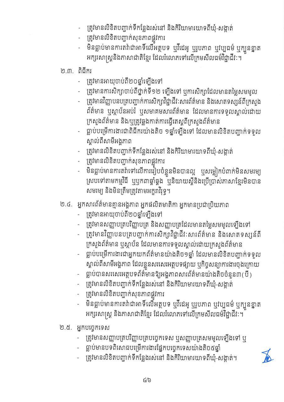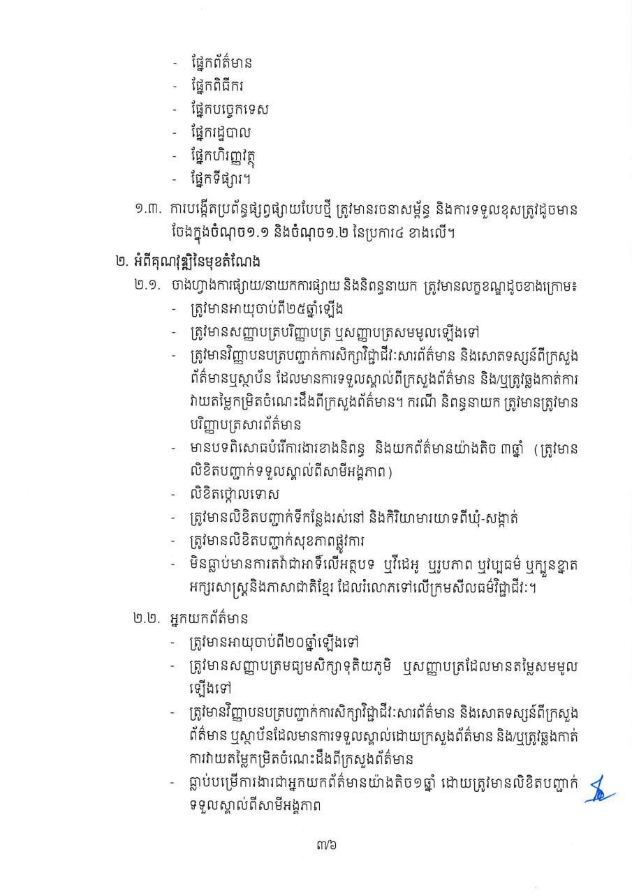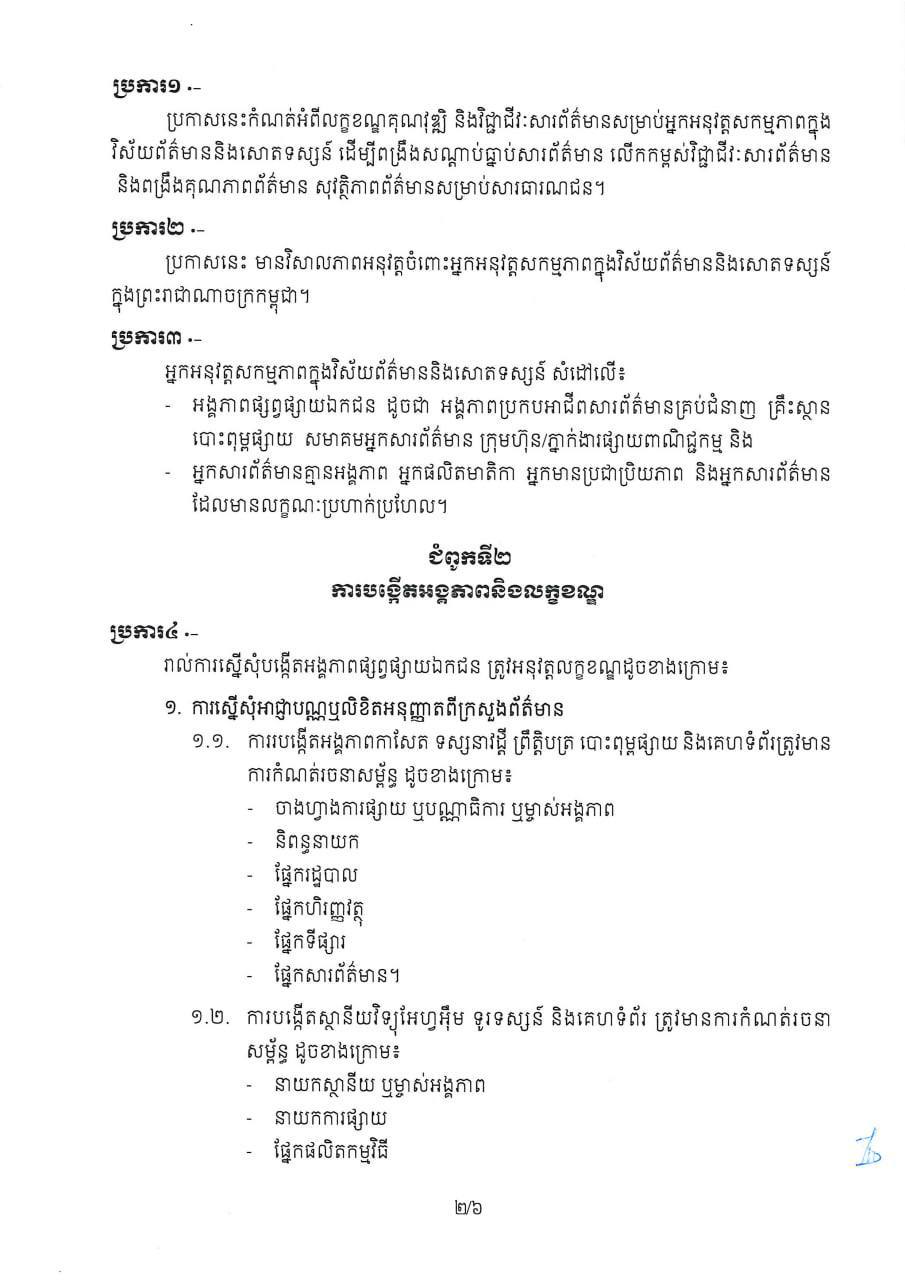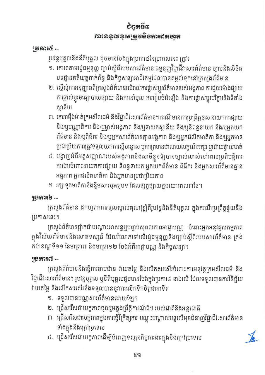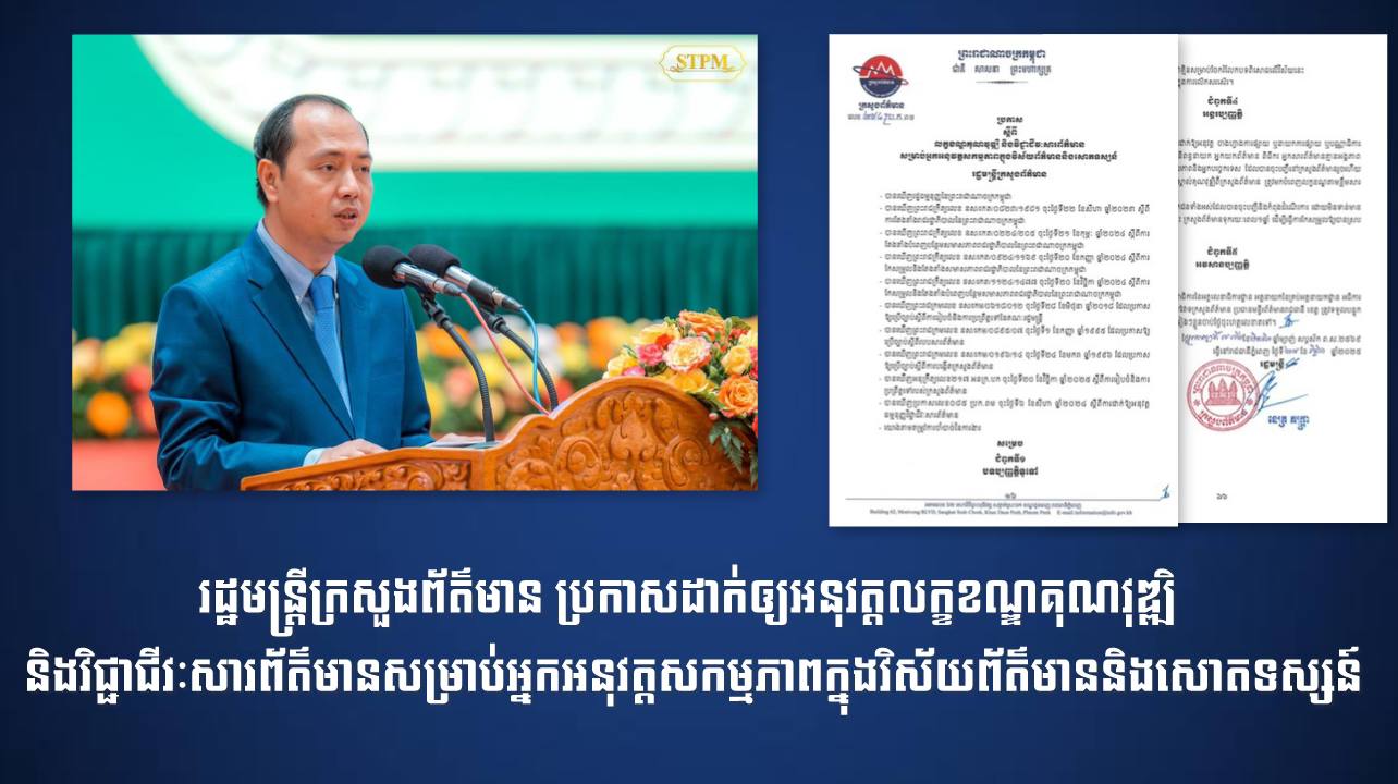 រដ្ឋមន្រ្ដីក្រសួងព័ត៌មាន ប្រកាសដាក់ឲ្យអនុវត្តលក្ខខណ្ឌគុណវុឌ្ឍិ និងវិជ្ជាជីវៈសារព័ត៌មានសម្រាប់អ្នកអនុវត្តសកម្មភាពក្នុងវិស័យព័ត៌មាននិងសោតទស្សន៍