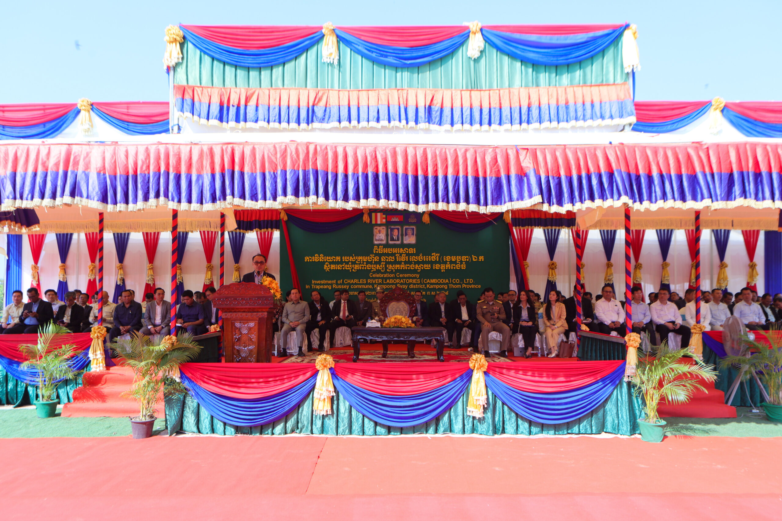 (កំពង់ធំ)៖ ព្រឹកថ្ងៃទី១៥ ខែមករា ឆ្នាំ២០២៦ ឯកឧត្តម វង្សី វិស្សុត ឧបនាយករដ្ឋមន្រ្តីប្រចាំការ រដ្ឋមន្រ្តី ទទួលបន្ទុកទីស្ដីការគណៈរដ្ឋមន្រ្តី និងជាប្រធានក្រុមការងាររាជរដ្ឋាភិបាលចុះមូលដ្ឋានខេត្តកំពង់ធំ បានអញ្ជើញជាអធិបតីក្នុងពិធីអបអរសាទរការវិនិយោគរបស់ក្រុមហ៊ុន Charles River Laboratories (CRL) ដែលជាក្រុមហ៊ុនអាម៉េរិកឈានមុខគេនៅលើពិភពលោក ក្នុងវិស័យវិទ្យាសាស្រ្ត និងស្រាវជ្រាវវេជ្ជសាស្រ្ត ដើម្បីប្រកាសពីការចាប់ផ្តើមដំណាក់កាលថ្មីនៃការវិនិយោគ និងប្រតិបត្តិការរយៈពេលវែងនៅកម្ពុជា ស្ថិតនៅស្រុកកំពង់ស្វាយ ខេត្តកំពង់ធំ ដែលមានទឹកប្រាក់វិនិយោគរហូតដល់ ៥០០ លានដុល្លារអាម៉េរិក។ ពិធីនេះ ក៏មានអញ្ជើញចូលរួមពីសំណាក់តំណាងស្ថានទូតសហរដ្ឋអាម៉េរិកនៅកម្ពុជាផងដែរ។