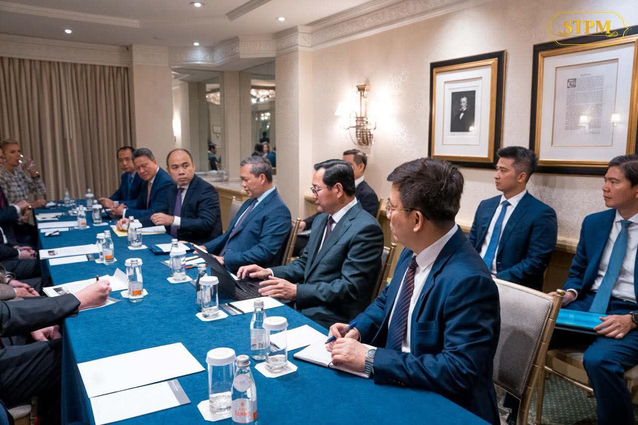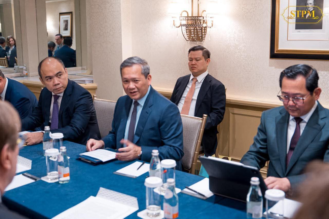 នាព្រឹកថ្ងៃទី២០ ខែកុម្ភៈ ឆ្នាំ២០២៦, សម្ដេចធិបតី ហ៊ុន ម៉ាណែត នាយករដ្ឋមន្ត្រីនៃព្រះរាជាណាចក្រកម្ពុជា បានជួបសម្ដែងការគួរសមនិងពិភាក្សាការងារជាមួយ ឯកឧត្តមឧត្តមសេនីយ៍ Jim Jones និង ឯកឧត្តម Frederick Kempe ប្រធាននិងជានាយកប្រតិបត្តិក្រុមប្រឹក្សាអាត្លង់ទិកក្នុងឱកាសនៃការអញ្ជើញដឹកនាំគណៈប្រតិភូជាន់ខ្ពស់រាជរដ្ឋាភិបាលកម្ពុជាចូលរួមកិច្ចប្រជុំលើកដំបូងនៃក្រុមប្រឹក្សាសន្តិភាព (Board of Peace) នៅរដ្ឋធានីវ៉ាស៊ីនតោន សហរដ្ឋអាម៉េរិក។