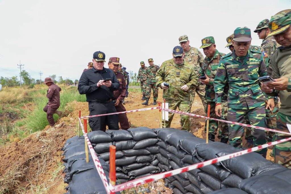 The delegation of foreign military attachés continued to inspect the situation along the Cambodian–Thai border in Preah Vihear Province. On Thursday, March 5, 2026, at 10:35 a.m., the Ministry of National Defence of the Kingdom of Cambodia coordinated the delegation’s visit to inspect the unexploded ordnance left behind following the Thai military’s attack on Cambodia in 2025, as well as the implementation of the ceasefire between Cambodia and Thailand that came into effect on December 27, 2025, in Preah Vihear Province.