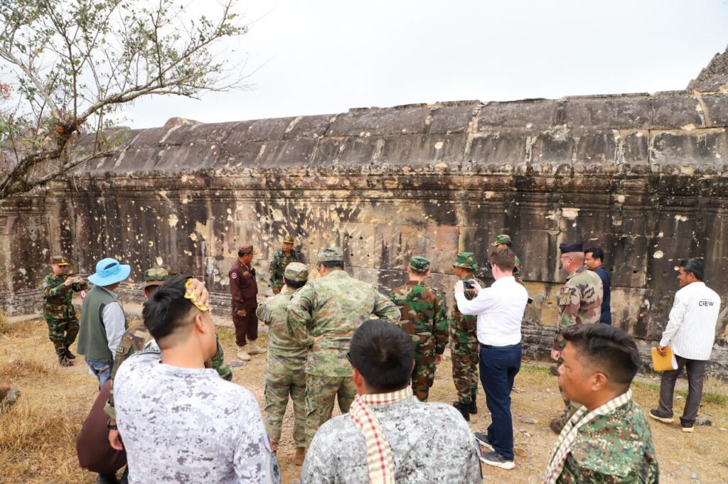 អនុព័ន្ធយោធាបរទេសបានចុះត្រួតពិនិត្យតំបន់ប្រាសាទ ព្រះវិហារដែលរងការខូចខាតយ៉ាងដំណំដោយសារការវាយប្រហារពីយោធាថៃ