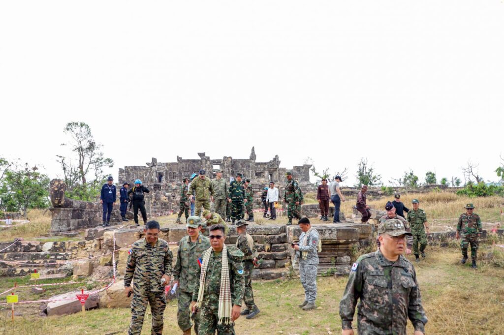 លោកជំទាវឧត្តមសេនីយ៍ឯក ម៉ាលី សុជាតា អ្នកនាំពាក្យក្រសួងការពារជាតិ នៃព្រះរាជាណាចក្រកម្ពុជាបានបញ្ជាក់ថានៅថ្ងៃព្រហស្បតិ៍ទី៥ ខែមីនា ឆ្នាំ២០២៦ វេលាម៉ោង ១១:១០នាទីព្រឹក ក្រសួងការពារជាតិ នៃព្រះរាជាណាចក្រកម្ពុជា បានសម្របសម្រួលជូនគណៈប្រតិភូអនុព័ន្ធយោធាបរទេស ប្រចាំព្រះរាជាណាចក្រកម្ពុជា ទាំង១២ប្រទេស អញ្ជើញទៅកាន់តំបន់ប្រាសាទព្រះវិហារនិងតំបន់ជុំវិញ ស្ថិតនៅឃុំស្រអែម ស្រុកជាំក្សាន្ត ខេត្តព្រះវិហារ ព្រះរាជាណាចក្រកម្ពុជា ដែលជាសម្បត្តិបេតិកភណ្ឌពិភពលោកដ៏មានតម្លៃបំផុតរបស់មនុស្សជាតិដែលរងការខូចខាតយ៉ាងដំណំដោយសារការវាយប្រហារពីសំណាក់យោធាថៃ។