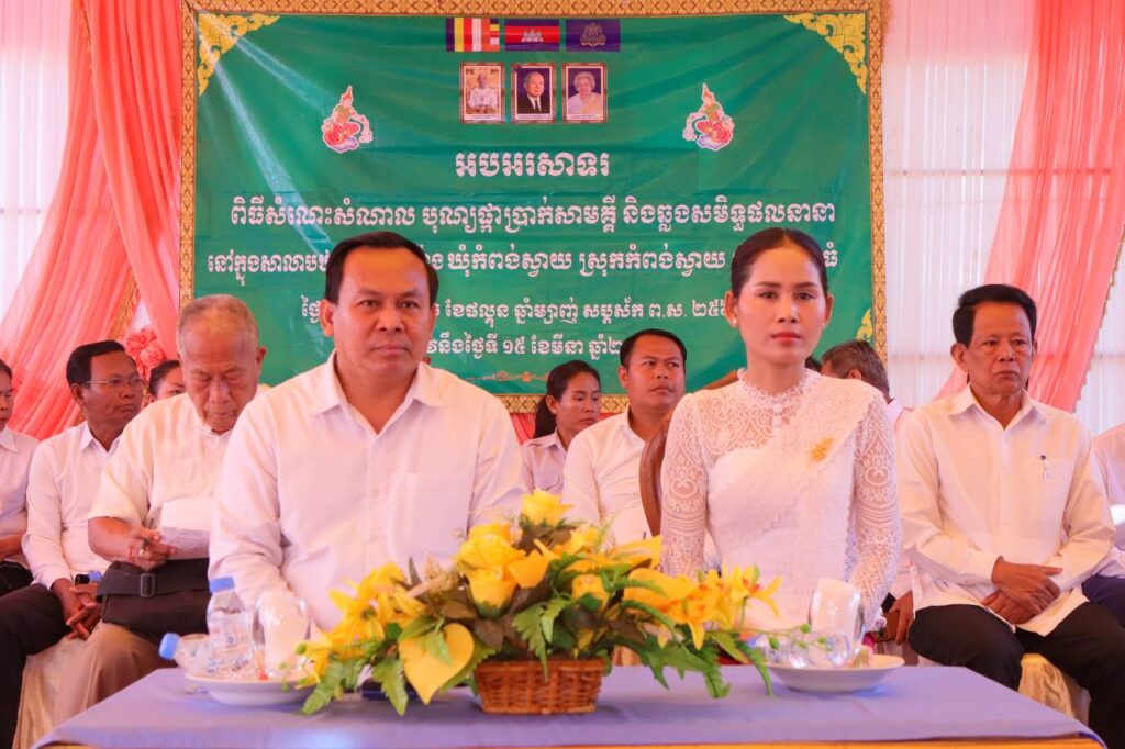 ឯកឧត្តម ទិត សុធា ប្រធានក្រុមការងាររាជរដ្ឋាភិបាលចុះមូលដ្ឋានស្រុកកំពង់ស្វាយ និងលោកជំទាវ ព្រមទាំងក្រុមការងារ បានអញ្ជើញជាអធិបតីដ៏ខ្ពង់ខ្ពស់ក្នុងពិធីបុណ្យផ្កាប្រាក់សាមគ្គី ដើម្បីបន្តការកសាងសមិទ្ធផលនានាបន្ថែមទៀតក្នុងបរិវេណសាលាបឋមសិក្សាតាប៉ោង ស្ថិតក្នុងឃុំកំពង់ស្វាយ ស្រុកកំពង់ស្វាយ ខេត្តកំពង់ធំ។