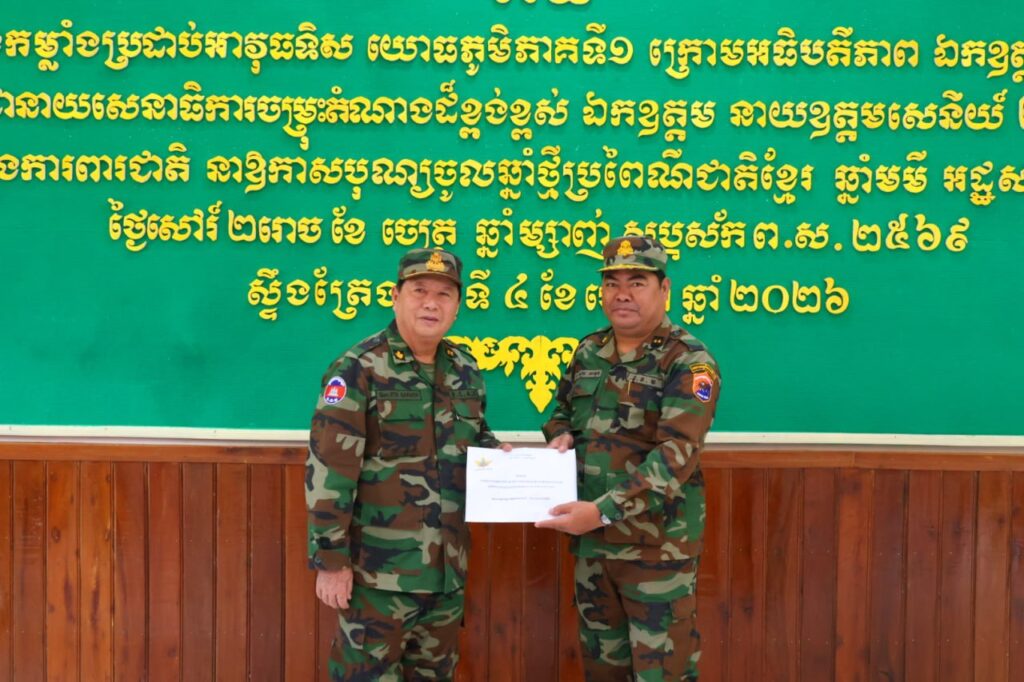 យោងតាមការបង្ហោះផ្សាយរបស់ក្រសួងការពារជាតិបានឱ្យដឹងថា នៅយោធភូមិភាគទី១ ខេត្តស្ទឹងត្រែង នៅថ្ងៃទី៤ ខែមេសា ឆ្នាំ២០២៦ ឯកឧត្តមនាយឧត្តមសេនីយ៍ ឥត សារ៉ាត់ អគ្គមេបញ្ជាការរង នាយសេនាធិការចម្រុះ នៃកងយោធពលខេមរភូមិន្ទ តំណាងដ៏ខ្ពង់ខ្ពស់ ឯកឧត្តម នាយឧត្តមសេនីយ៍ ទៀ សីហា ឧបនាយករដ្ឋមន្ត្រី រដ្ឋមន្ត្រីក្រសួងការពារជាតិ បានអញ្ជើញចុះសួរសុខទុក្ខ និងជូនពរជ័យ សិរីសួស្តីដល់យោធិនដែលកំពុងបំពេញបេសកកម្មដ៏ឧត្តុង្គឧត្តមក្នុងការការពារបូរណភាពទឹកដី នៅសមរភូមិមុខតាមបណ្តោយព្រំដែនកម្ពុជា-ថៃ នៅយោធភូមិភាគទី១ ខេត្តស្ទឹងត្រែង នាឱកាសបុណ្យចូលឆ្នាំថ្មី ឆ្នាំមមី អដ្ឋស័ក ពុទ្ធសករាជ ២៥៧០ ដែលនឹងឈានមកដល់នៅពេលខាងមុខ។