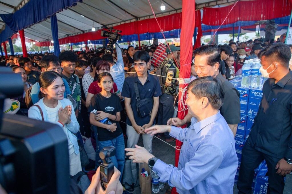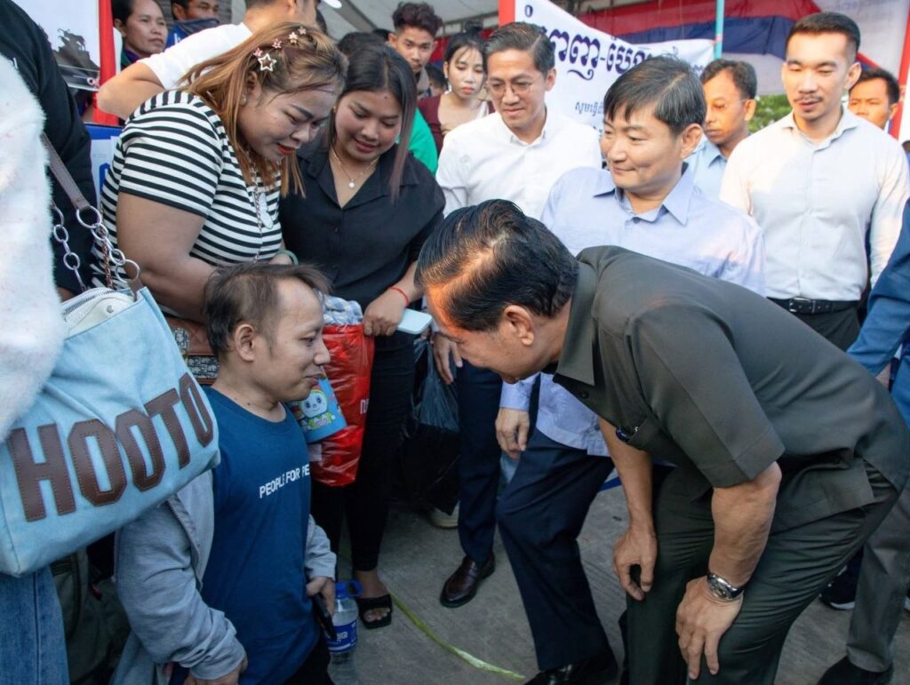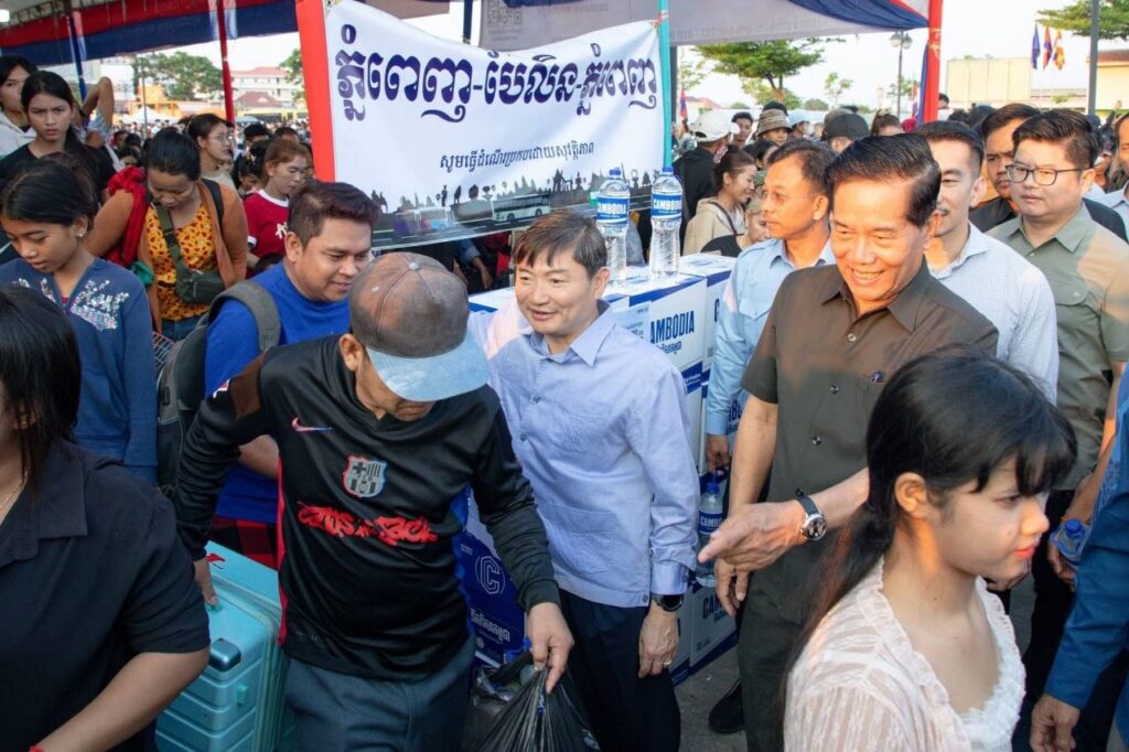 ឯកឧត្តម ហេង សួរ រដ្ឋមន្ត្រីក្រសួងការងារនិងបណ្ដុះបណ្ដាលវិជ្ជាជីវៈនិងឯកឧត្តម ឃួង ស្រេង អភិបាលនៃគណៈអភិបាលរាជធានីភ្នំពេញបានអញ្ជើញជូនដំណើរបងប្អូនកម្មករនិយោជិតនិងប្រជាពលរដ្ឋធ្វើដំណើរទៅលេងស្រុកកំណើតតាមមធ្យោបាយរថយន្តក្រុងរបស់រដ្ឋបាលរាជធានីភ្នំពេញដោយមិនគិតថ្លៃ នាព្រឹកថ្ងៃអាទិត្យទី១២ ខែមេសា ឆ្នាំ២០២៦ នៅទីលានប្រជាធិបតេយ្យ ស្ថិតក្នុងខណ្ឌឫស្សីកែវដែលអនុវត្តតាមអនុសាសន៍ដ៏ខ្ពង់ខ្ពស់របស់សម្ដេចមហាបវរធិបតី ហ៊ុន ម៉ាណែត នាយករដ្ឋមន្ត្រីនៃព្រះរាជាណាចក្រកម្ពុជា។