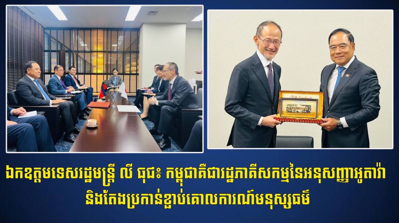 ឯកឧត្តមបណ្ឌិត លី ធុជ ទេសរដ្ឋមន្ត្រី អនុប្រធានទី១ អាជ្ញាធរមីន បានគូសបញ្ជាក់ប្រាប់ឯកអគ្គរាជទូតជប៉ុន ថា កម្ពុជាគឺជារដ្ឋភាគីសកម្មនៃអនុសញ្ញាអូតាវ៉ា និងតែងតែប្រកាន់ខ្ជាប់ជានិច្ចនូវគោលការណ៍មនុស្សធម៌