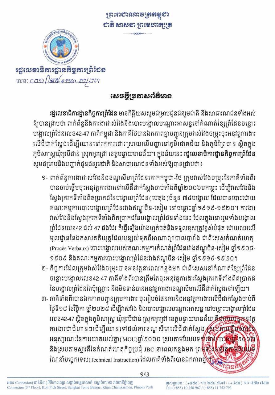 (ភ្នំពេញ)៖ យោងតាមមន្ត្រីជាន់ខ្ពស់ នៃរដ្ឋលេខាធិការដ្ឋានកិច្ចការព្រំដែន នៃព្រះរាជាណាចក្រកម្ពុជា