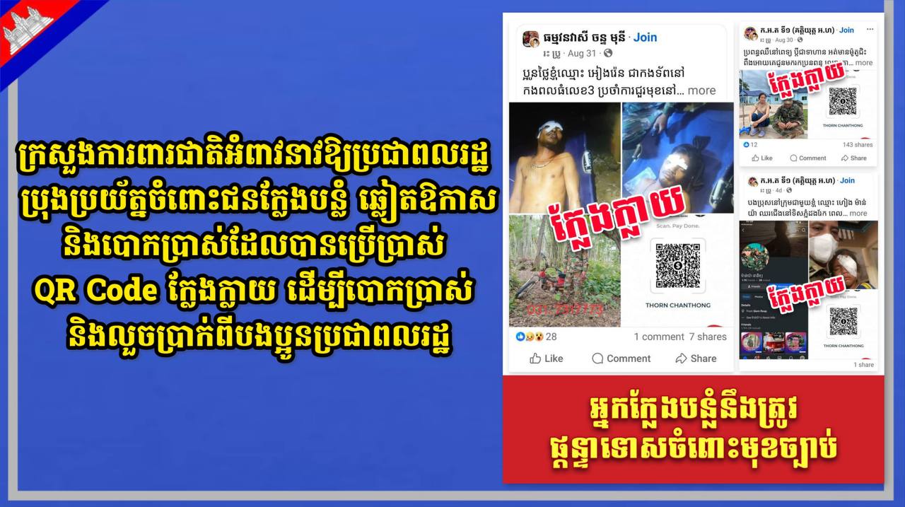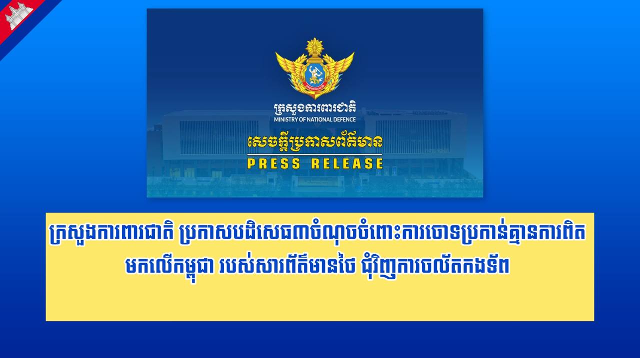 ក្រសួងការពារជាតិ ប្រកាសបដិសេធ៣ចំណុចចំពោះការចោទប្រកាន់គ្មានការពិតមកលើកម្ពុជា របស់សារព័ត៌មានថៃ ជុំវិញការចល័តកងទ័ព