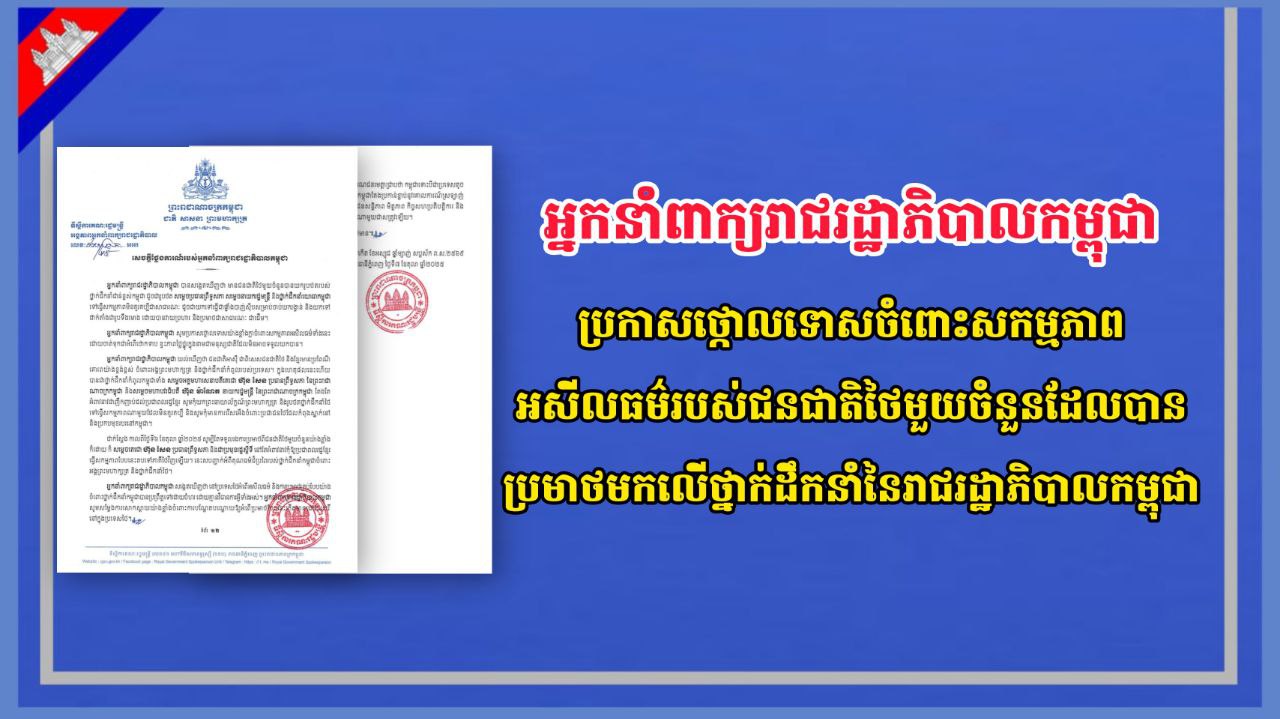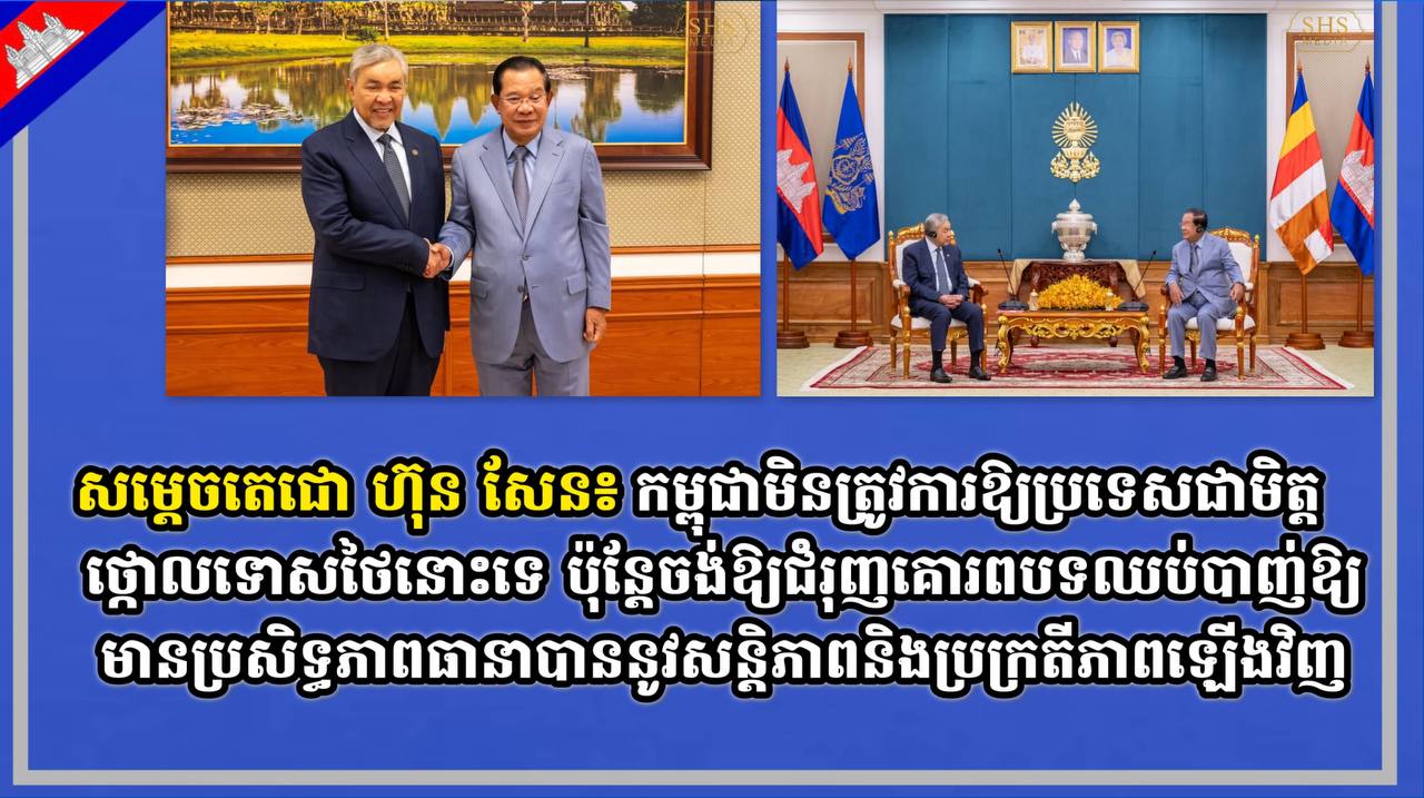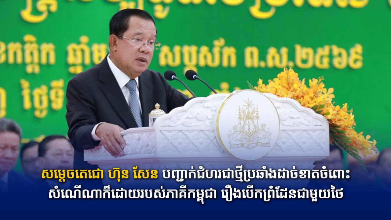 សម្តេចតេជោ ហ៊ុន សែន ប្រធានព្រឹទ្ធសភា បានថ្លែងថា កម្ពុជាសុំតែសេចក្តីសុខ និងមិនត្រូវការឈ្លានពានប្រទេសណានោះទេ តែបែរជាថៃចោទប្រកាន់មកលើកម្ពុជាថាយកដីគេ នេះជាការចោទប្រកាន់មួយដែលមិនមែនជាការពិត ព្រោះអតីតកាល