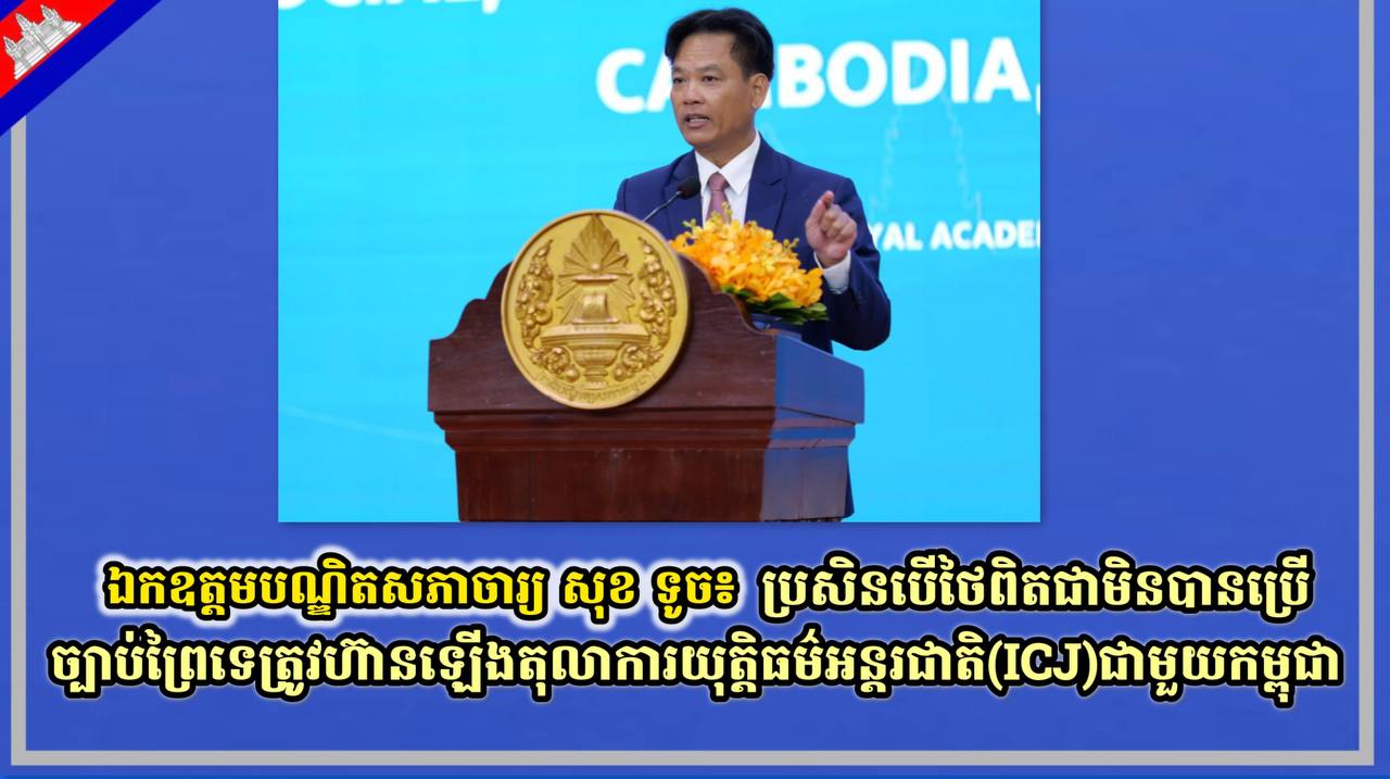 ឯកឧត្តមបណ្ឌិតសភាចារ្យ សុខ ទូច៖ ប្រសិនបើថៃពិតជាមិនបានប្រើច្បាប់ព្រៃទេ ត្រូវហ៊ានឡើងតុលាការយុត្តិធម៌អន្តរជាតិ(ICJ)ជាមួយកម្ពុជា