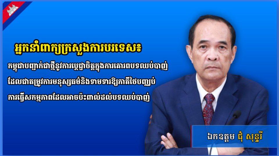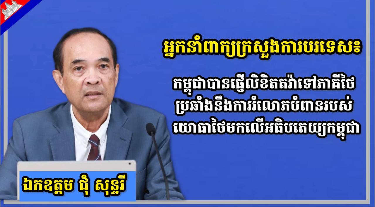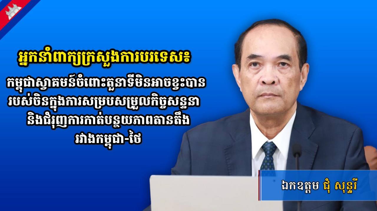 អ្នកនាំពាក្យក្រសួងការបរទេស៖ កម្ពុជាបញ្ជាក់ជាថ្មីនូវការប្តេជ្ញាចិត្តក្នុងការគោរពបទឈប់បាញ់ដែលជាតម្រូវការមនុស្សធម៌និងទាមទារឱ្យភាគីថៃបញ្ឈប់ការធ្វើសកម្មភាពដែលអាចប៉ះពាល់ដល់បទឈប់បាញ់