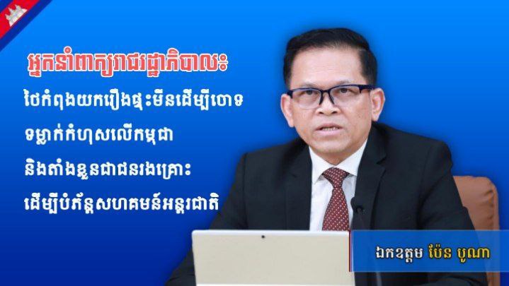 អ្នកនាំពាក្យរាជរដ្ឋាភិបាល ថ្កោលទោសចំពោះទាហានថៃដែលបានប្រព្រឹត្តអំពើហិង្សាលើពលរដ្ឋខ្មែរ និងទាមទារឱ្យអាជ្ញាធរថៃគោរពកិច្ចព្រមព្រៀមបទឈប់បាញ់