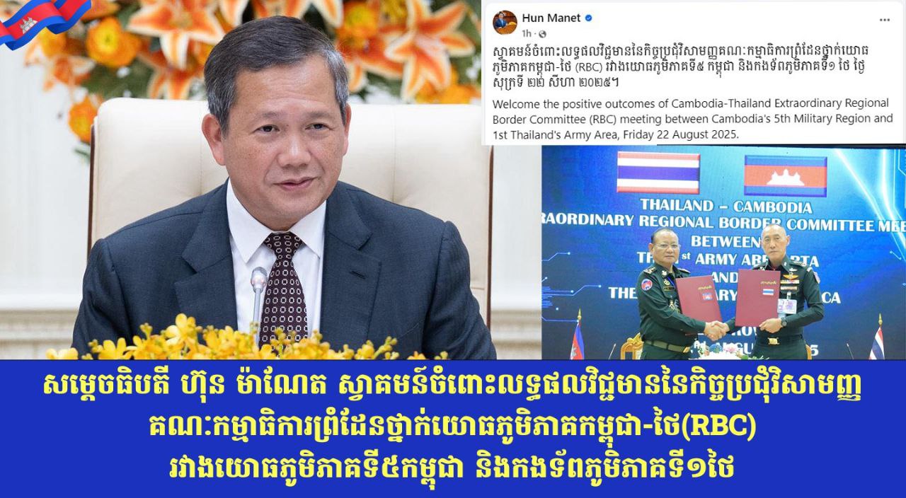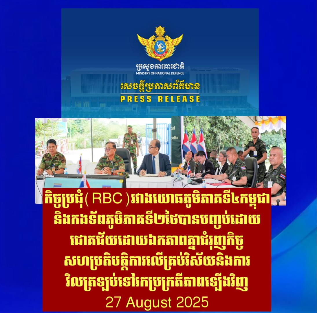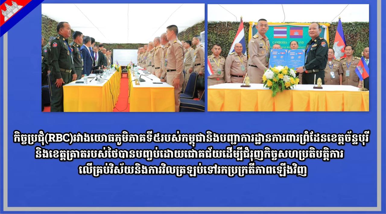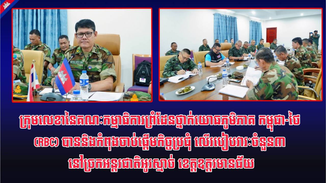 ក្រុមលេខានៃគណៈកម្មាធិការព្រំដែនថ្នាក់យោធភូមិភាគ កម្ពុជា-ថៃ (RBC) បាននិងកំពុងចាប់ផ្ដើមកិច្ចប្រជុំ លើរបៀបវារៈចំនួន៣ នៅច្រកអន្តរជាតិអូរស្មាច់ ខេត្តឧត្តរមានជ័យ