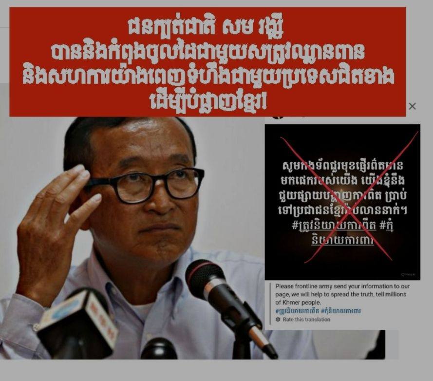 អគ្គបញ្ជាការដ្ឋានកងយោធពលខេមរភូមិន្ទបដិសេធចំពោះការផ្សាយបំភ្លៃបំផ្លើសថា«រាជរដ្ឋាភិបាលបានគម្រាមកំហែងនិងកាត់ប្រាក់ខែកងទ័ពជួរមុខ»និងស្នើសុំឱ្យអនុវត្តច្បាប់ដកសញ្ជាតិចំពោះជនក្បត់ជាតិ សម រង្ស៊ី